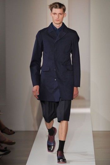 Don’t Call it a Comeback-Eight years after leaving her eponymous label, Jil Sander returns to Milan with a new collection that easily finds its footing amongst today’s fashions. A self-proclaimed minimalist with a long history of simple elegance, sharp lines and cuts defined the latest range. Achieving the modern definition of a classic, semi-fitted suiting opened the show with Sander infusing a youthful zest, presenting sleeveless jackets and pumping up the volume of the white dress shirt, courtesy of exaggerated sleeves. Pairing her designs with a squared-toe shoe, the outing achieved a level of sophistication, while also maintaining an attitude that these were pieces to live in. As much as the tailored double-breasted jacket or overcoat reigned in vibrant hues of blue and yellow, graphic t-shirts and oversized shorts felt right at home and immediately at ease, much like the designer herself.