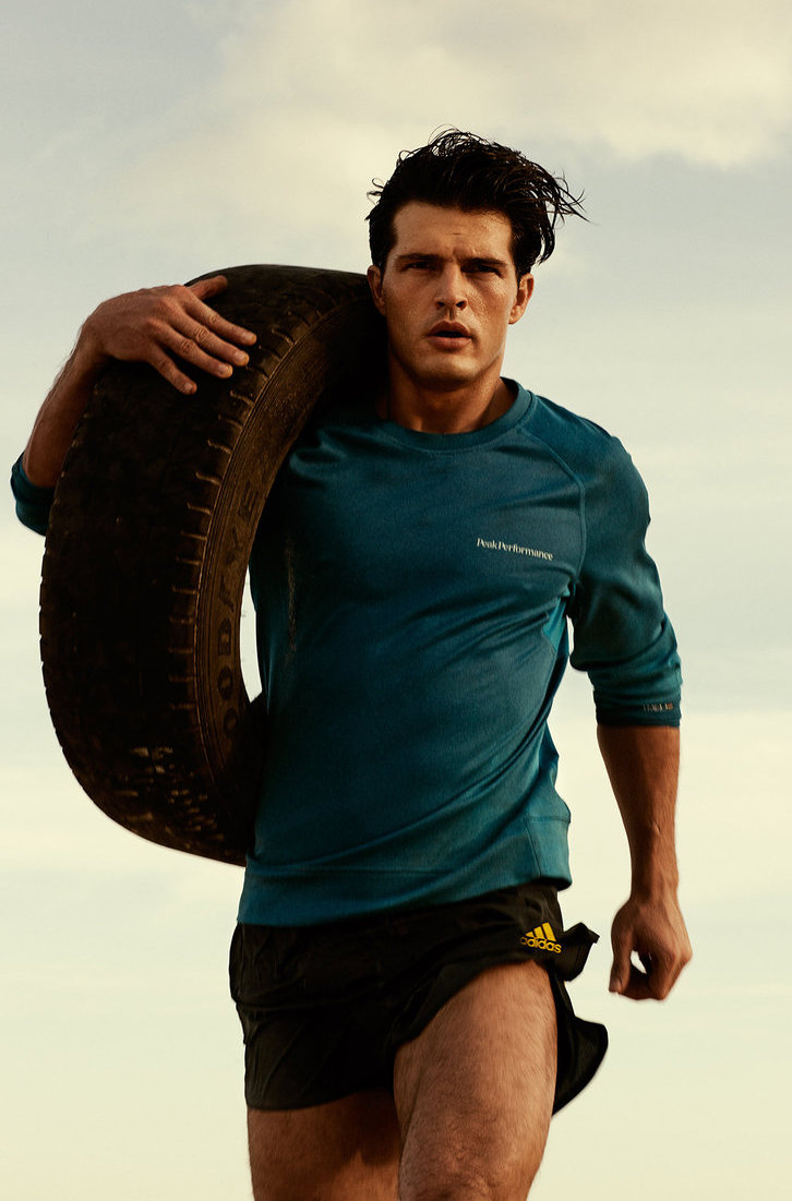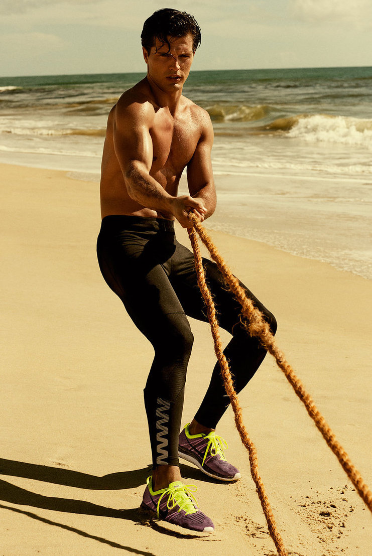 Let’s Get Physical!–After spending some time at the beach for the latest issue of Swedish magazine Café, photographer Jimmy Backius and model Diego Miguel reunite for a photo series. Focusing his sights on Diego’s healthy and active lifestyle, Backius captures the Brazilian model in a series of dynamic pictures that unveil us Diego’s fitness regime, which includes an energetic run on the sand and an invigorating swim at the sunset.