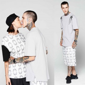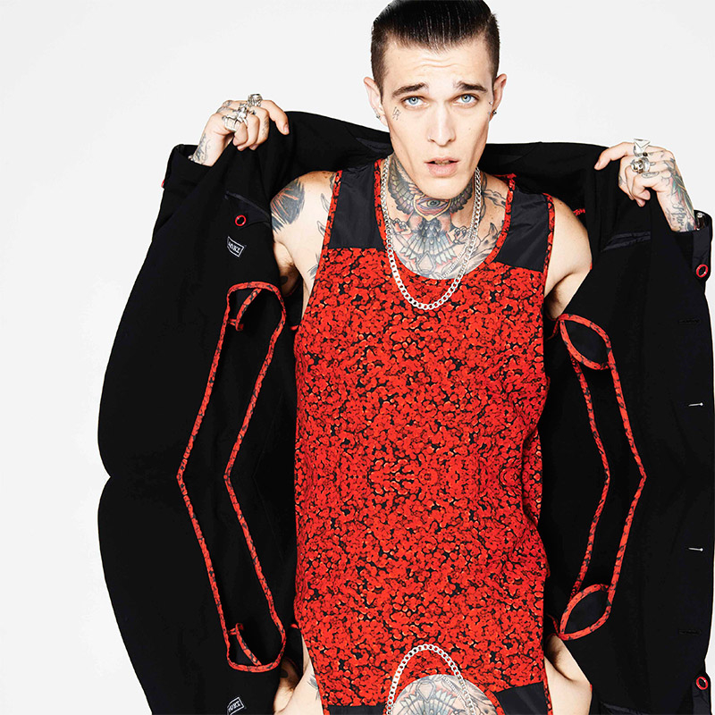 Fashionable Edge-London-based fashion label DAINKE enlists tattooed model extraordinaire Jimmy Quaintance to star in its spring/summer 2015 lookbook. The ideal personality for a relaxed wardrobe with a modern edge, Jimmy is featured in the brand’s Italian manufactured essentials. Based around separates, relaxed pieces come together with simple cuts, intricate prints and a contemporary rock attitude. From joggers and oversized shorts with drawstring to leather jackets and vests, DAINKE produces a young outing that touches upon streetwear and excels.