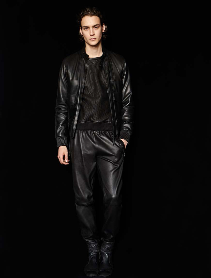 Jitrois Fall/Winter 2014–Fashion label Jitrois continues to push the traditional boundaries of leather as they approach fall 2014 with a modern attitude. Crafting a collection for the man of style that exudes an effortless cool, leather is the foundation of a smart collection. Built around essentials for the urban dweller, everything from the fitted leather biker’s jacket to luxe pullovers come together with a minimal structure. Add to the mix a hybrid of the shirt jacket and the varsity jacket or leather joggers and you have a rich outing that successfully explores contemporary streetwear for the luxury market.