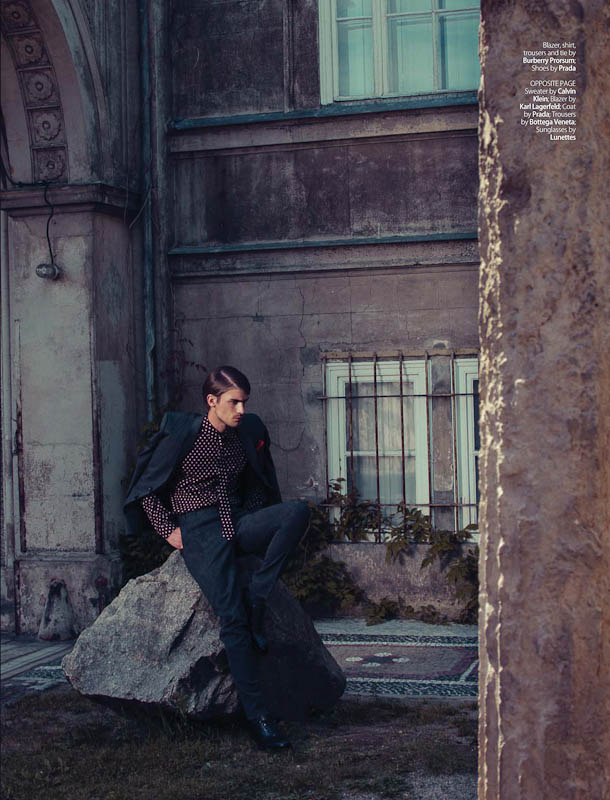 Luxe Appeal–For August Man Malaysia’s latest editorial, photographer Lukasz Wolejko-Wolejszo joins forces with creative director Melvin Chan for a polished and sun-kissed spread featuring fresh face Johan Johansson (Kult). Johan embraces pure luxury in dignified outerwear and dapper suiting sprinkled with sleek patterns as pulled together by stylist Dana Roski. Johan redefines the elegant modern man’s dress, looking impeccably dashing in elongated silhouettes, pops of vibrant patterns, and fresh layering by top labels such as Prada, Burberry Prorsum, and Dior Homme. / Makeup by Ewa Cervena.