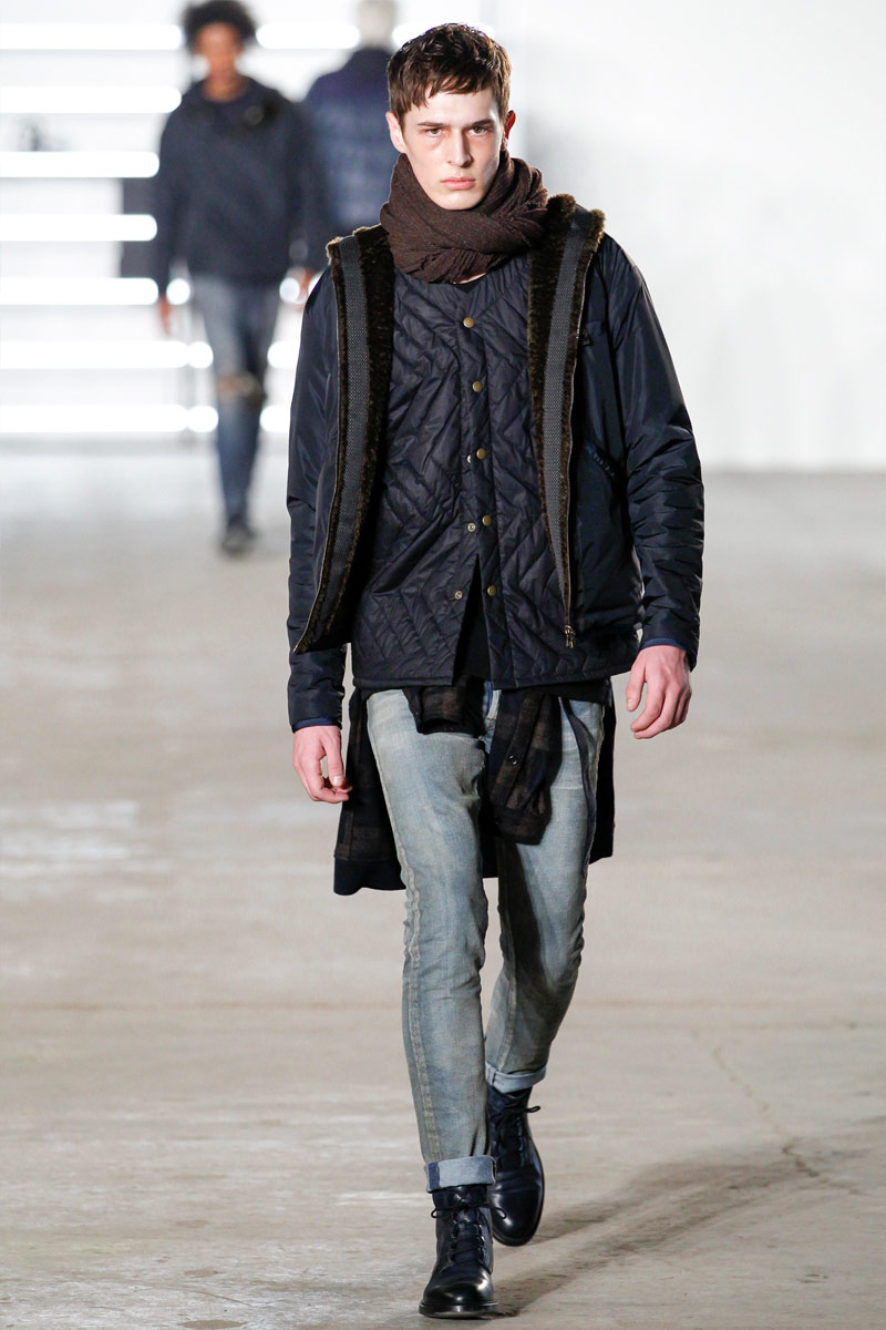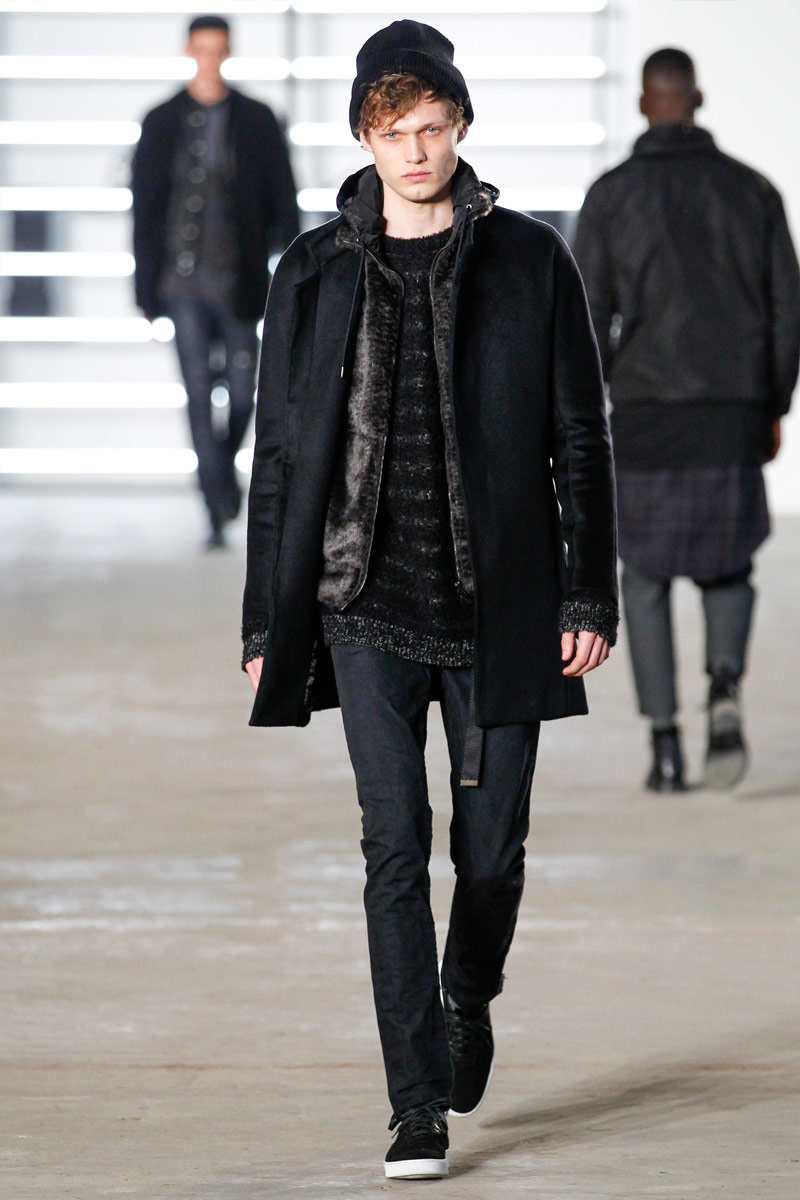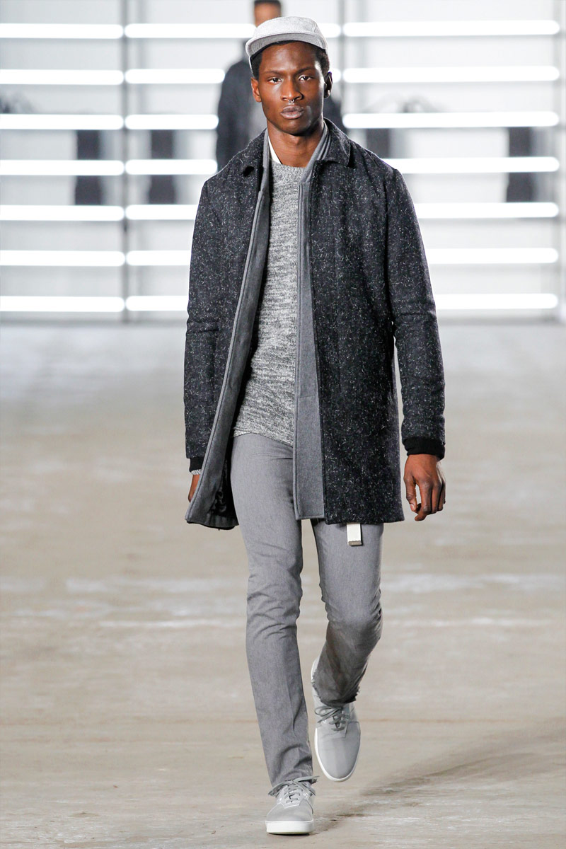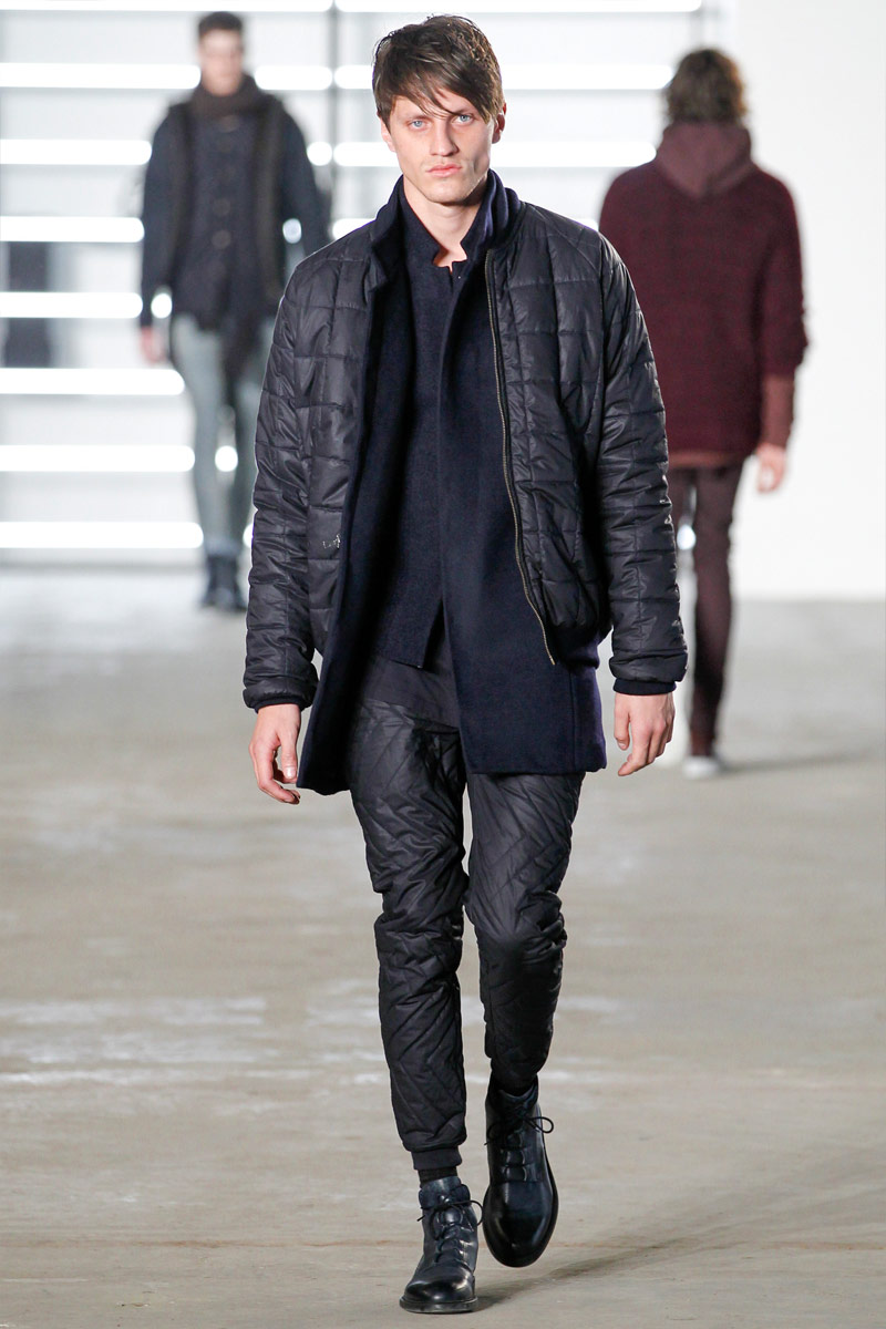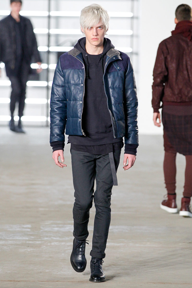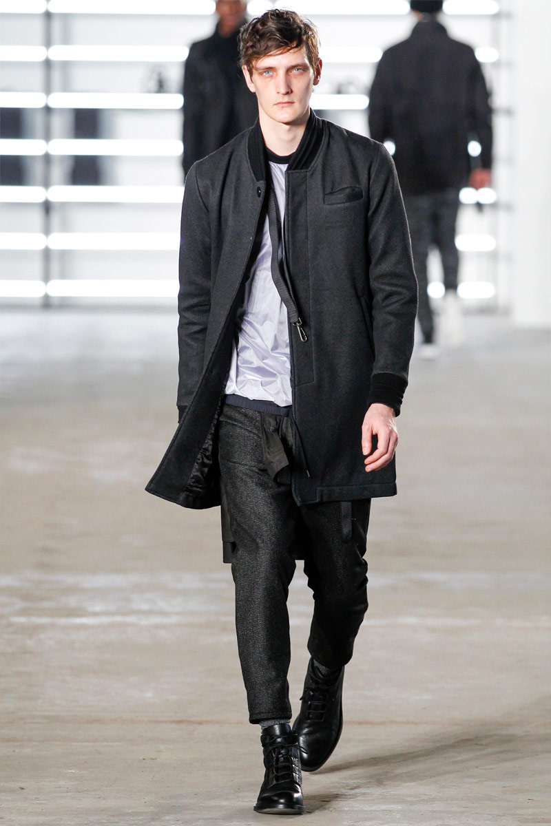 John Elliott approaches fall-winter 2016 with an evolution of layers. From a neutral take on athleisure style to contemporary military inspirations, Elliott serves up an array of reversed shearling outerwear, slim-cut trousers, shorts over leggings and short-sleeve jackets. Touching on shades of grey before taking a dark turn, the collection has plenty of staples, ranging from joggers to quilted outerwear. Adding a luxe spin to sporty essentials, leather and a dark color palette lend the collection its special quality. Here, leather bombers, hooded jackets and more are juxtaposed with moto style pants, oversized knitwear and denim jeans for a spectacular fall showing.