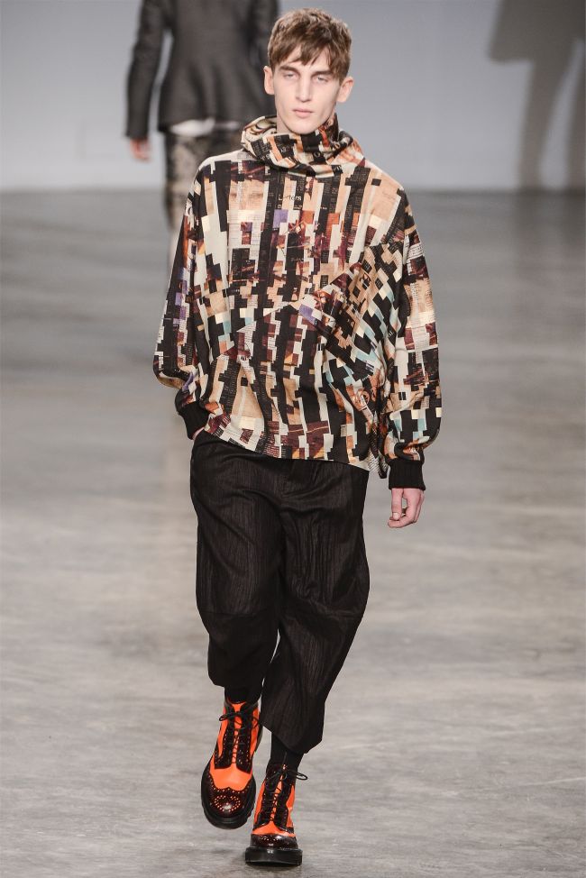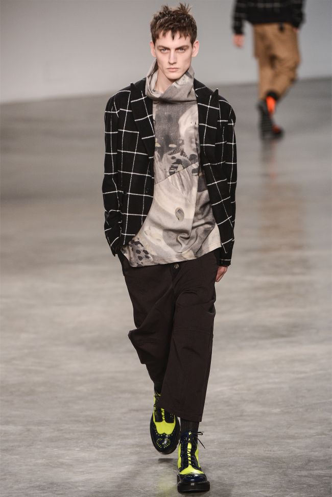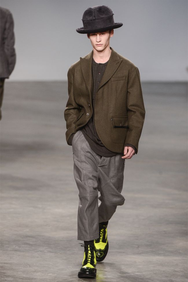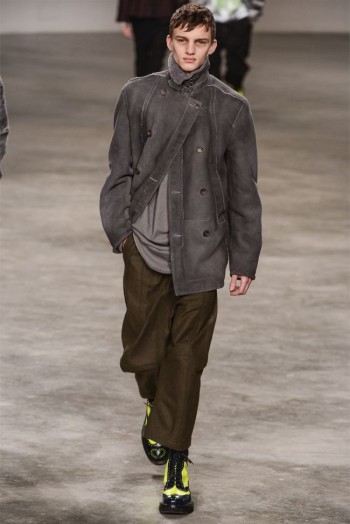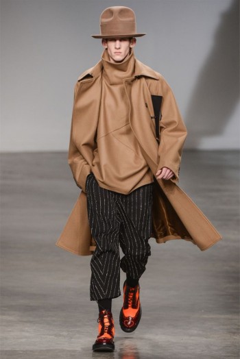 Relaxed Times at Galliano–Inspired by a relaxed fit to best make the transition from day to evening, play to work, John Galliano creative director Bill Gaytten turned to an eclectic stable of pieces for his fall/winter 2013 showing. From pinstripes and window pane prints to large graphics, the collection made an impact with upturned cowl necks, drawn out lapels and slouchy fits. The man of John Galliano was at times elegant, other times casual, but ultimately always young at heart and that’s where the fun of the latest collection rested.