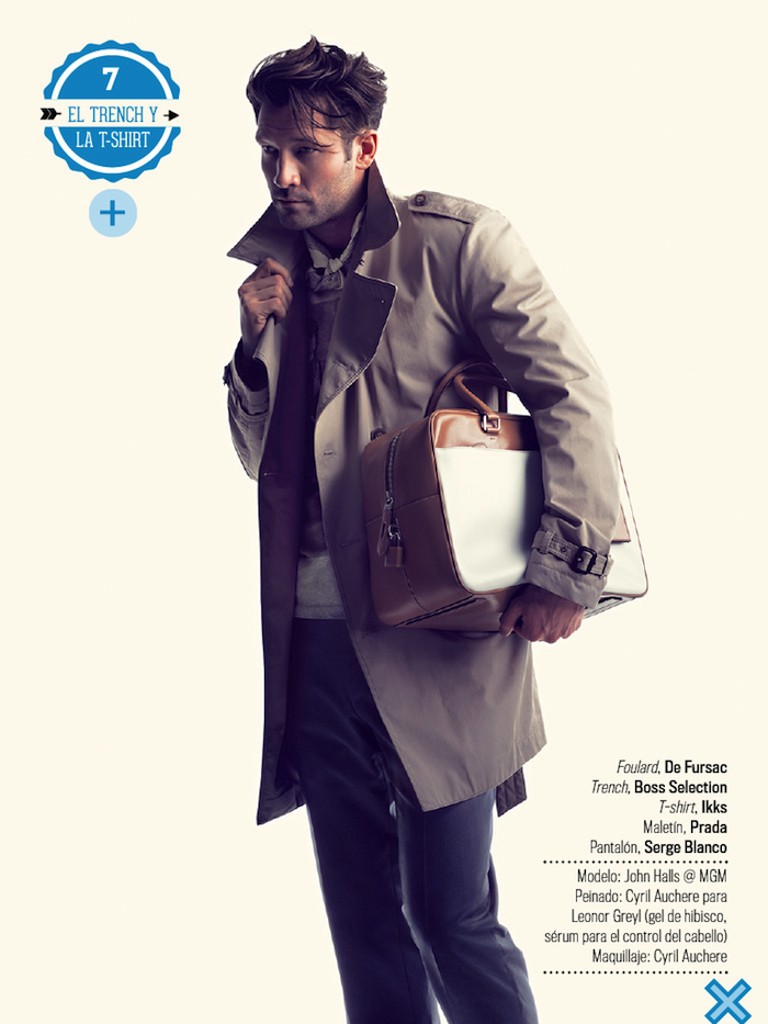 The Simple Way–Appearing on the pages of the August issue of Mexican GQ, former English footballer John Halls dons a series of casual styles, selected by James Sleaford. Posing for Arnaldo Anaya-Lucca’s lens, John easily charms in classic trench coats, checked two-piece suits or more sporty jumpers and sneakers, alternating pieces from the like of Lacoste, Boss Selection and others, reworked in a more luxurious way, with precise Rolex watches. / Grooming by Cyril Auchere.