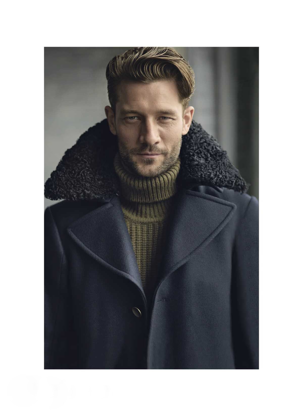 New Season, New Coats–For Details’ September issue, photographer John Balsom joins creative forces with Matthew Marden, the magazine’s fashion director, to shoot former English footballer John Halls in a story focused on fall’s standout coats. From Diesel Black Gold’s military inspired silhouettes, to Canali’s sartorial double-breasted suggestion, the fall collections spotlight outerwear once more, revisiting classics with a modern appeal. / Hair by Charlie Taylor. Makeup by Itsuki.