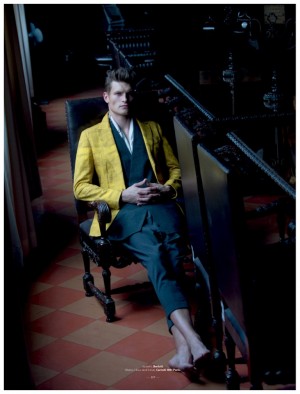 John Todd delivers an arresting fashion spread for the spring-summer 2015 issue of Vogue Hommes Paris. Hitting the beach with photographer Jack Pierson, the British model is a relaxed vision as he embraces a wardrobe of bright, bold colors. Tackling eclectic looks from Dolce & Gabbana, Balmain and other luxury labels, John is styled by Anastasia Barbieri.