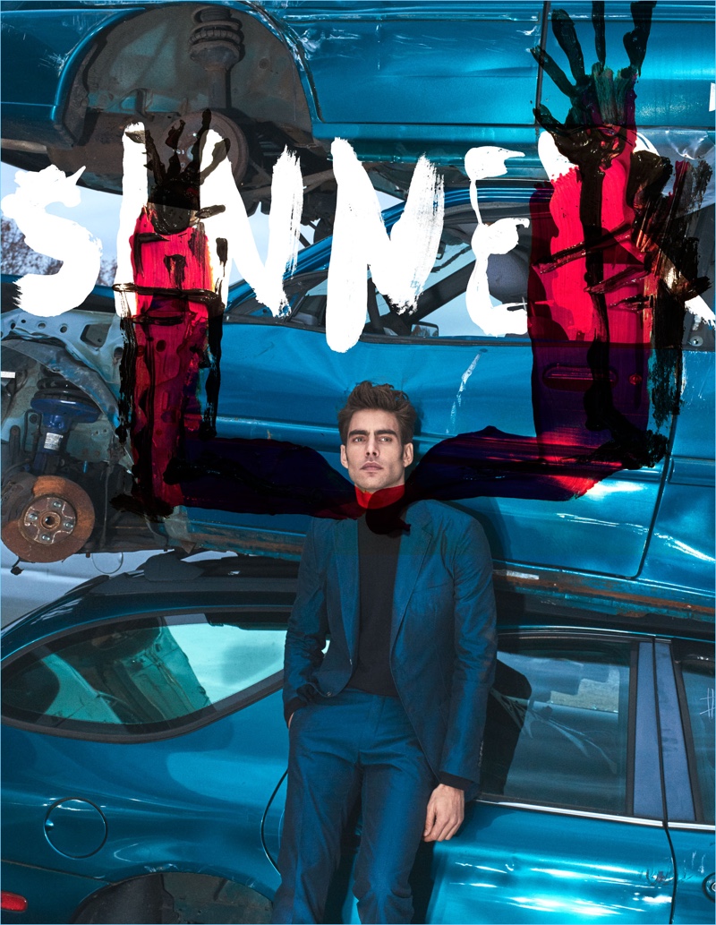 Reuniting with photography duo Hunter & Gatti, model Jon Kortajarena snags another cover from The Fashionable Lampoon. The Spanish model rocks monochromatic numbers for the fashion spread. Stylist Jimi Urquiaga outfits Jon in designer ensembles from brands such as Versace and Roberto Cavalli. The story also tackles an artsy spin as Jon’s outfits complement various car backgrounds. / Grooming by Paco Garrigues. Retouching by The Sharp Line.