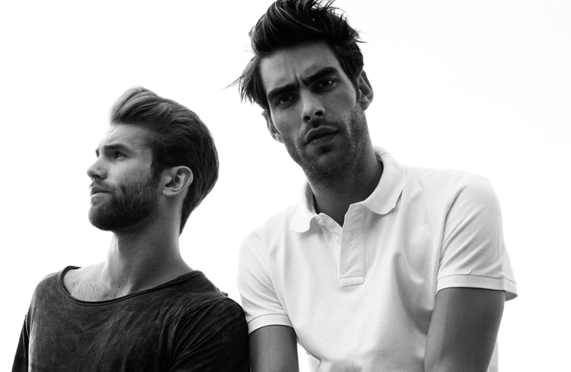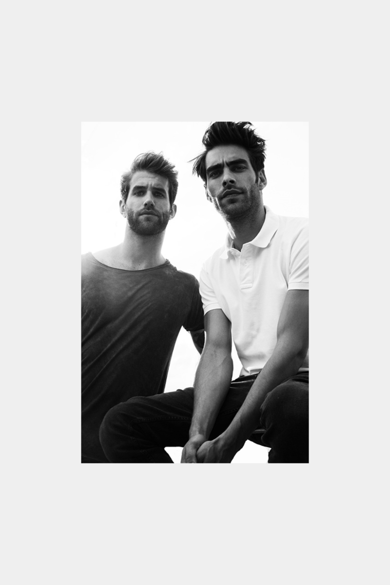 Jon & André-Models and friends, Jon Kortajarena and André Hamann come together for a quick trio of shots by photographer Mo Gaff. For the relaxed images, André wears a t-shirt from his new line, while Jon is a classic image in a white polo shirt.