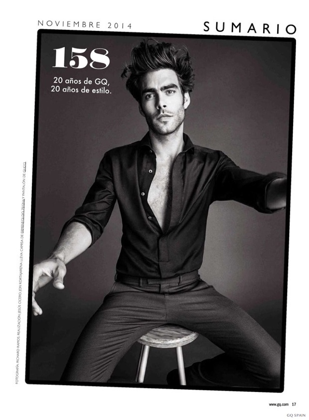 Jon on Top-Photographed by Richard Ramos, leading Spanish model Jon Kortajarena (View Management) graces the pages of GQ España’s November 2014 issue. Celebrating its twenty year anniversary, GQ España features Jon in a black & white studio shoot. An arresting vision in a dark wardrobe, Jon models dashing pieces from Gucci, Ermenegildo Zegna and Z Zegna.