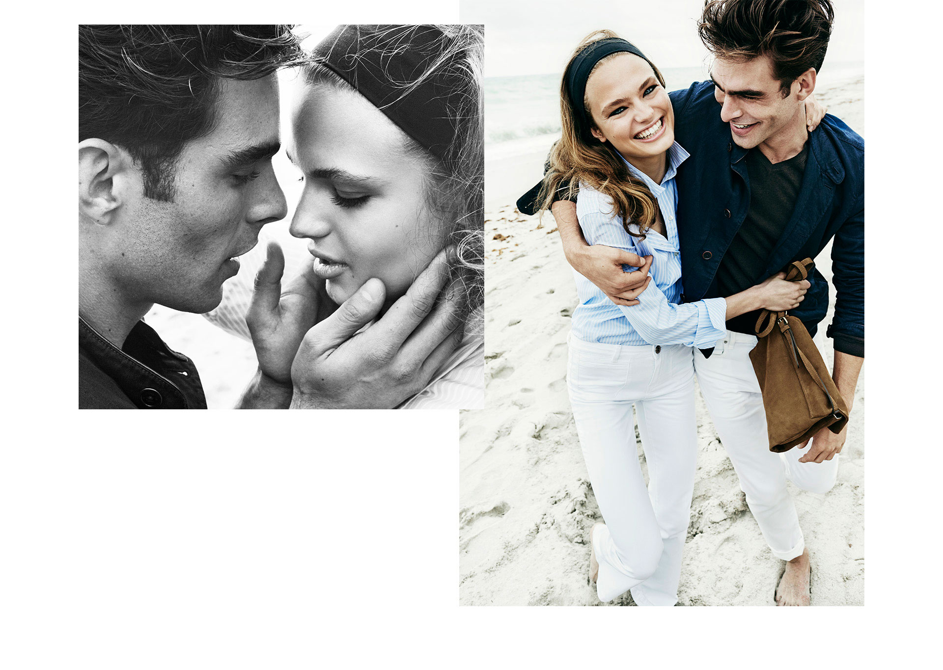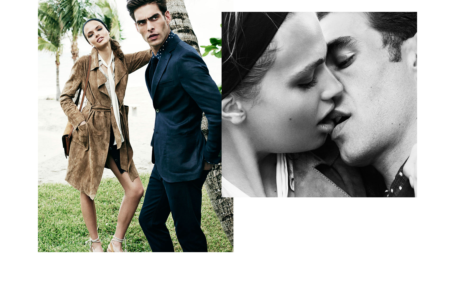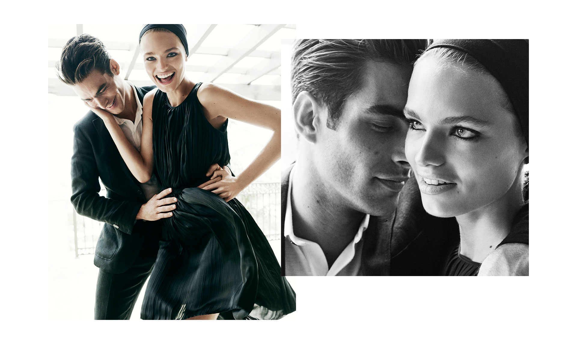 Spanish fashion brand Massimo Dutti enlists photographer Mario Testino to shoot its spring 2016 campaign. Embracing a romantic mood for the season, Massimo Dutti connects models Jon Kortajarena and Anna Mila Guyenz. Together, the pair couple up and showcase a series of his and her spring looks. Embracing tailoring and smart separates such as the striped tee and white trousers, Jon is quite the stylish vision.