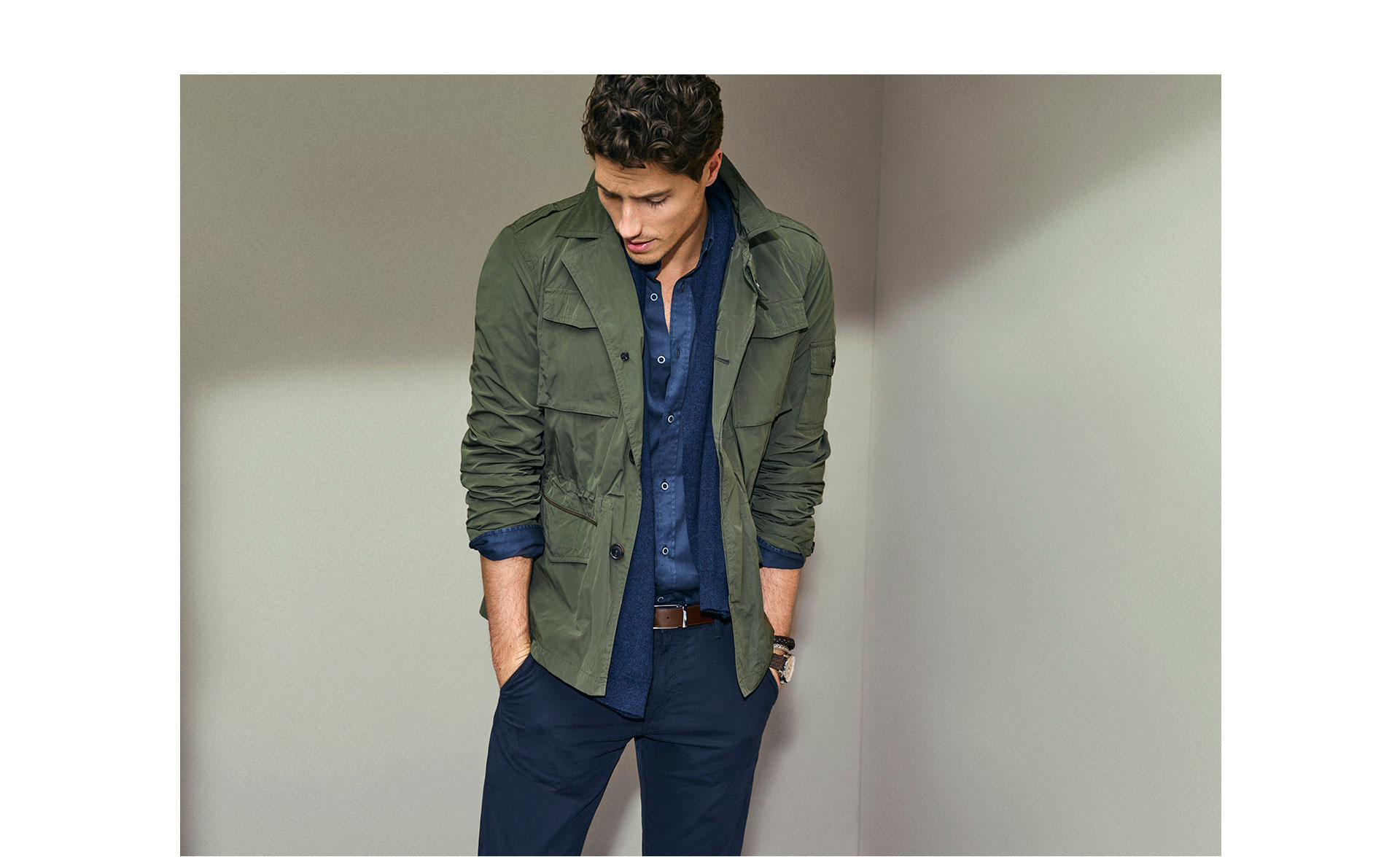 Massimo Dutti makes quite the contemporary fashion statement for spring with its updated classics. Items such as the safari jacket and hooded sweatshirt or sports jacket are front and center with impressive results.