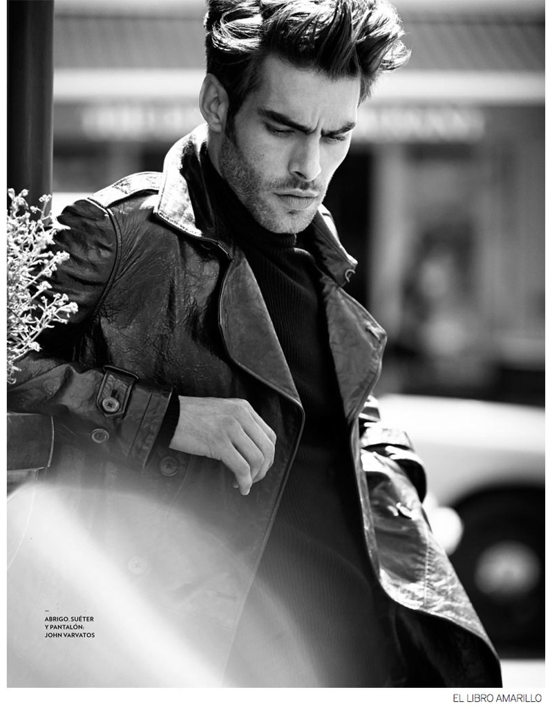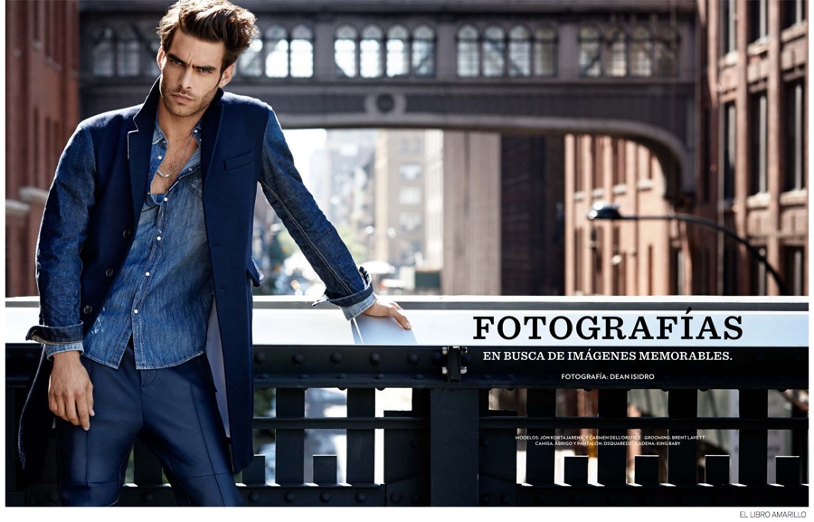 El Libro Amarillo Fall 2014-Mexican department store El Palacio de Hierro taps Spanish leading model Jon Kortajarena for a story in the fall edition of ‘El Libro Amarillo’. Photographed by Dean Isidro, Jon joins Carmen Dell’Orefice for a charming studio shoot in which he plays the role of photographer. Heading outdoors, Jon is easily as dapper in fashions styled by Luisa Pena. Sporting the latest styles from brands, including John Varvatos and Dsquared2, Jon mixes wearable elegance with a contemporary attitude. / Hair by Riad Azar. Makeup by Brent Lavett. Production by A+ Productions.