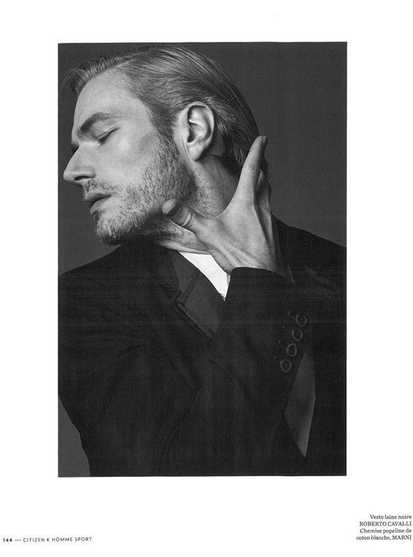 Shall We Dance?–The March 2013 issue of Citizen K features a black & white story featuring models Jonathan Bauer Hayden and Benoît Maréchal, lensed by Roger Deckker. Outfitted by stylist Jerôme André in glamorous eveningwear numbers, the Nathalie models appear in images that alternate classic and contemplative poses, with more dynamic shots, where the designs of Roberto Cavalli, Marni and others define a refined and sleek aesthetic for formal styles.