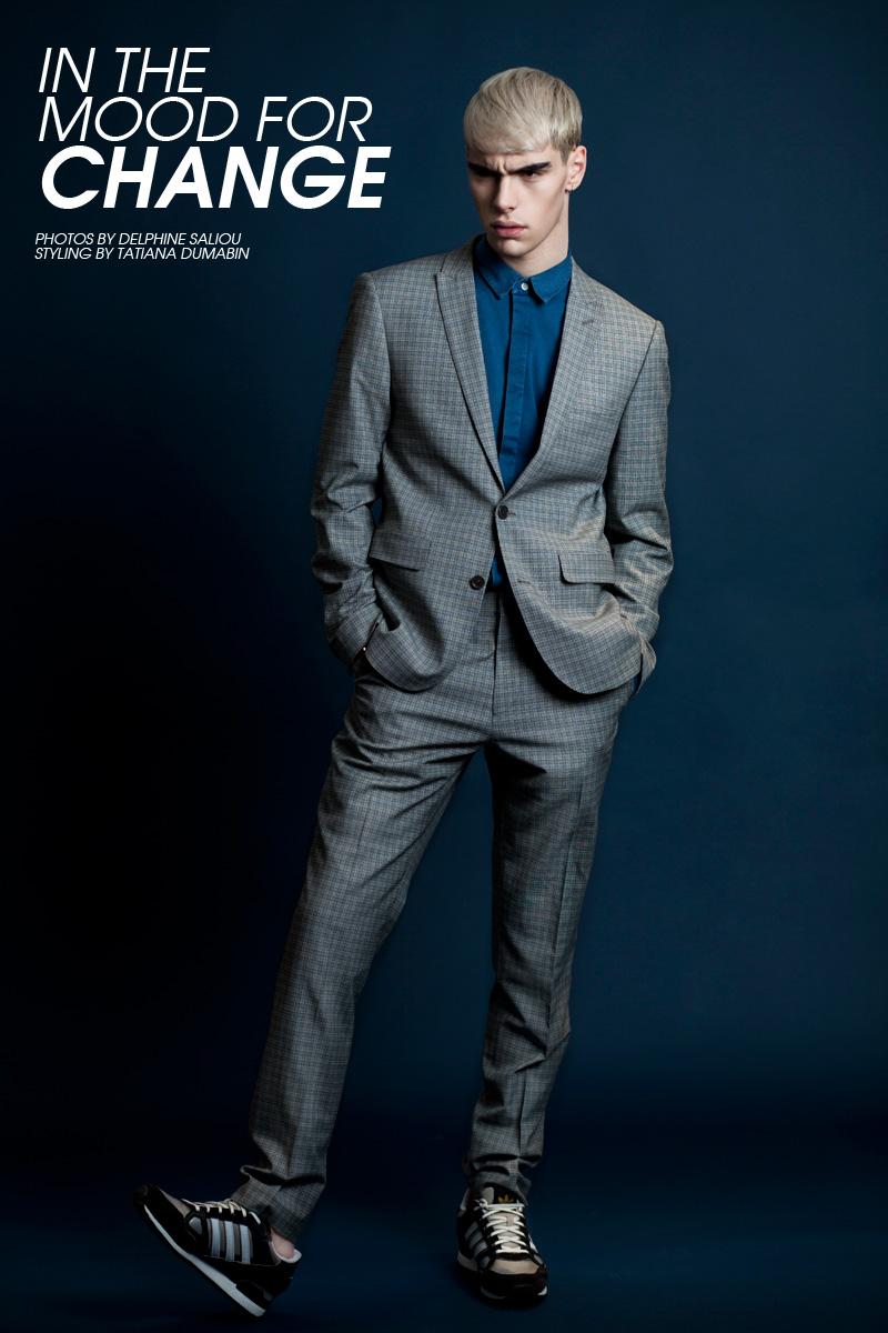 In the Mood for Change–Nathalie model Jonathan Bauer-Hayden proves that he can adapt to varied styles, starring in a new exclusive from photographer Delphine Saliou. Produced in collaboration with stylist Tatiana Dumabin, Jonathan goes from a sporty contemporary version of the classic suit to young hip bombers and shirting options. / Makeup by Aline Macouin. Hair by Yumiko Hikage.