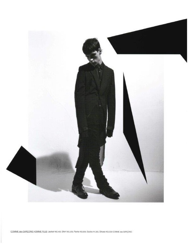 Huge Statement–Spending a day in the studio with photographer Yasutomo Ebisu, Nathalie model Jonathan Bauer-Hayden appears in a stylish new editorial for this month’s edition of Japanese magazine Huge. Sporting spiked earpieces, Jonathan makes a dramatic statement in black & white fashions from Saint Laurent by Hedi Slimane, Comme des Garcons and Yohji Yamamoto, among other labels.