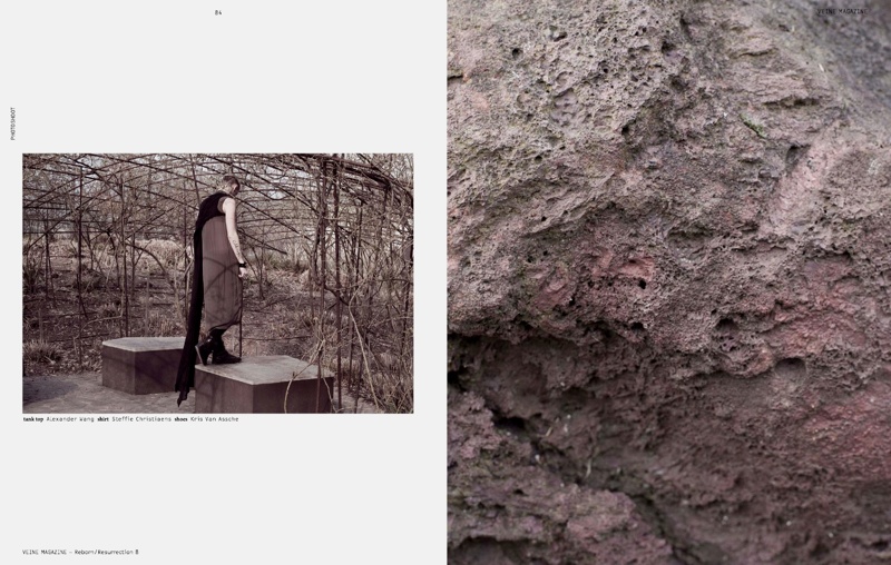 A Walk in Stone–Nathalie model Jonathan Bauer-Hayden reunites with fashion photographer Dorothée Murail for the latest issue of Veine magazine. Shot by Murail and Marine Gaillard, Jonathan is the subject of a story that juxtaposes the latest fashions with architecture and nature for a unique change of pace. / Styling by Dorothée Murail. Makeup by Aline Macoin. Hair by Julie Le Bris.
