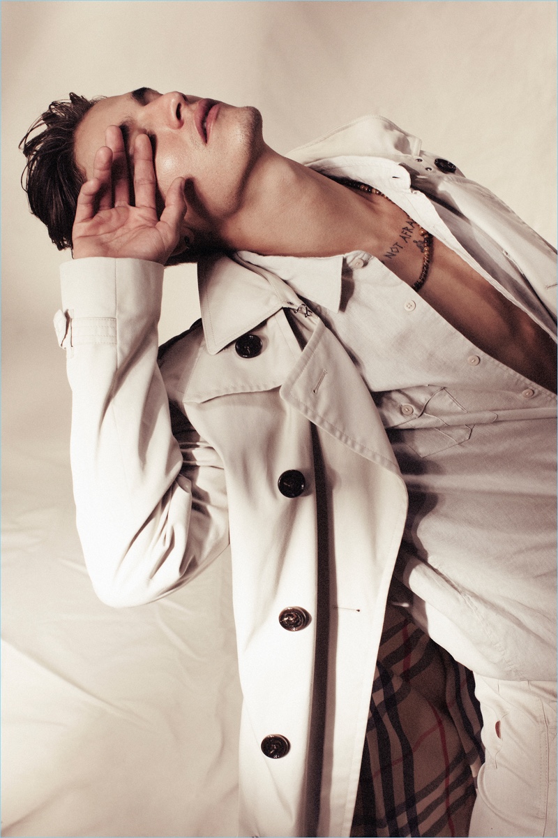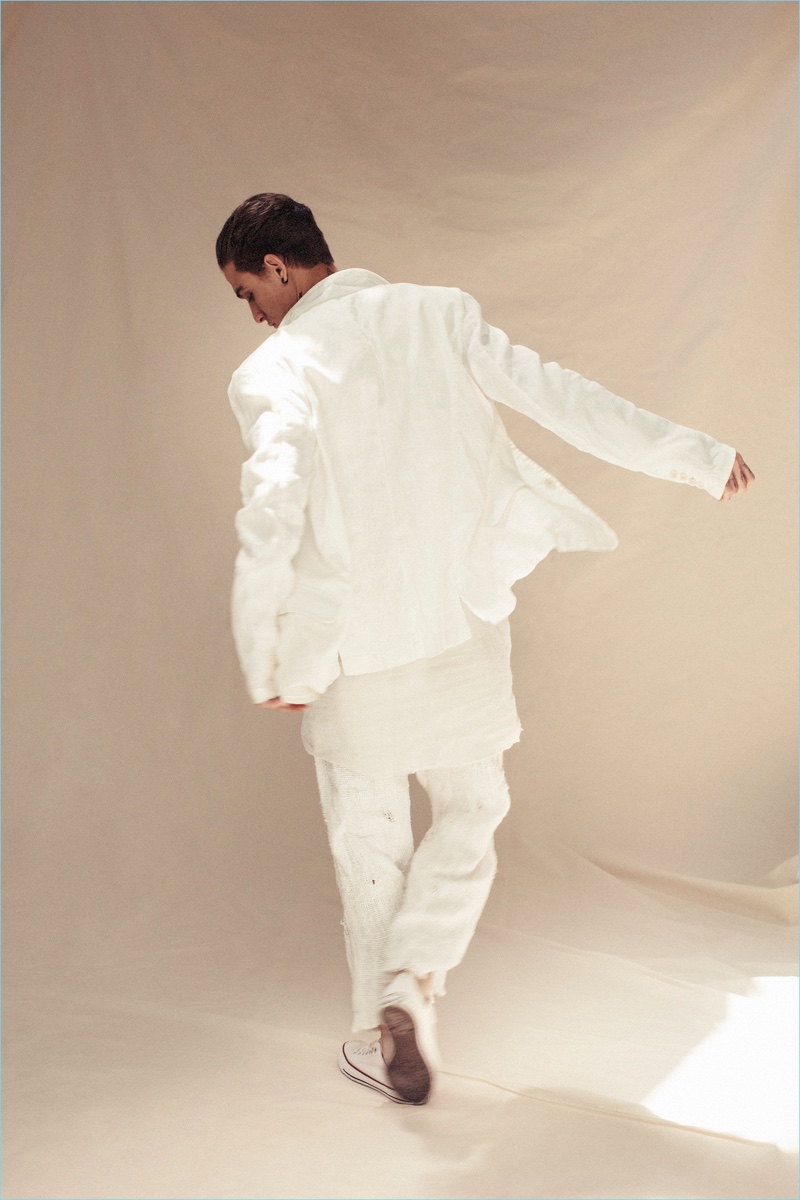 PinKarine Basilio photographs Jonathan Bellini in a Ralph Lauren blazer, Dolce & Gabbana robe, Hering shirt, Polo Ralph Lauren pants, and Converse sneakers.