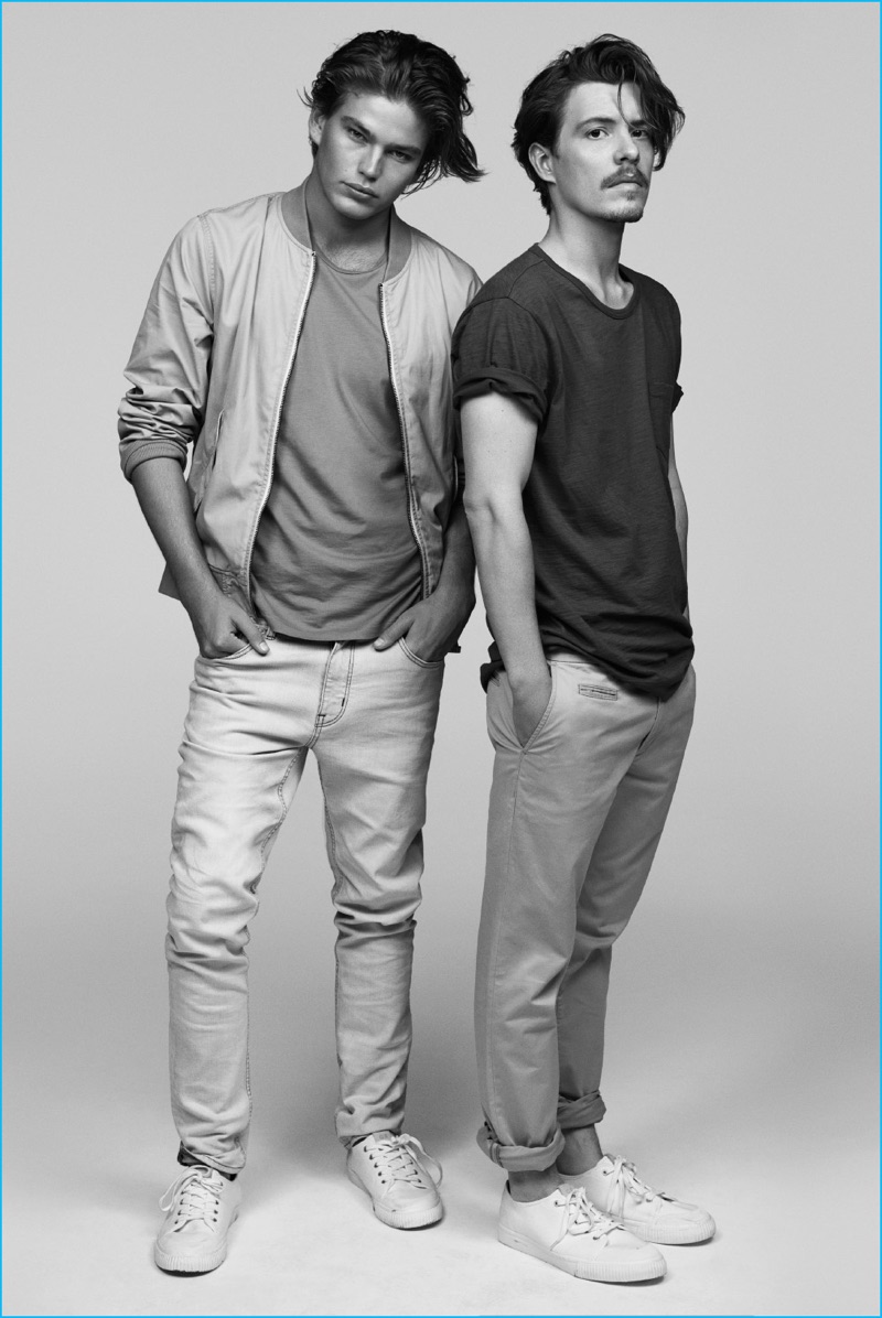 Jordan Barrett pictured alongside actor Xavier Samuels for Country Road's current campaign.Pin