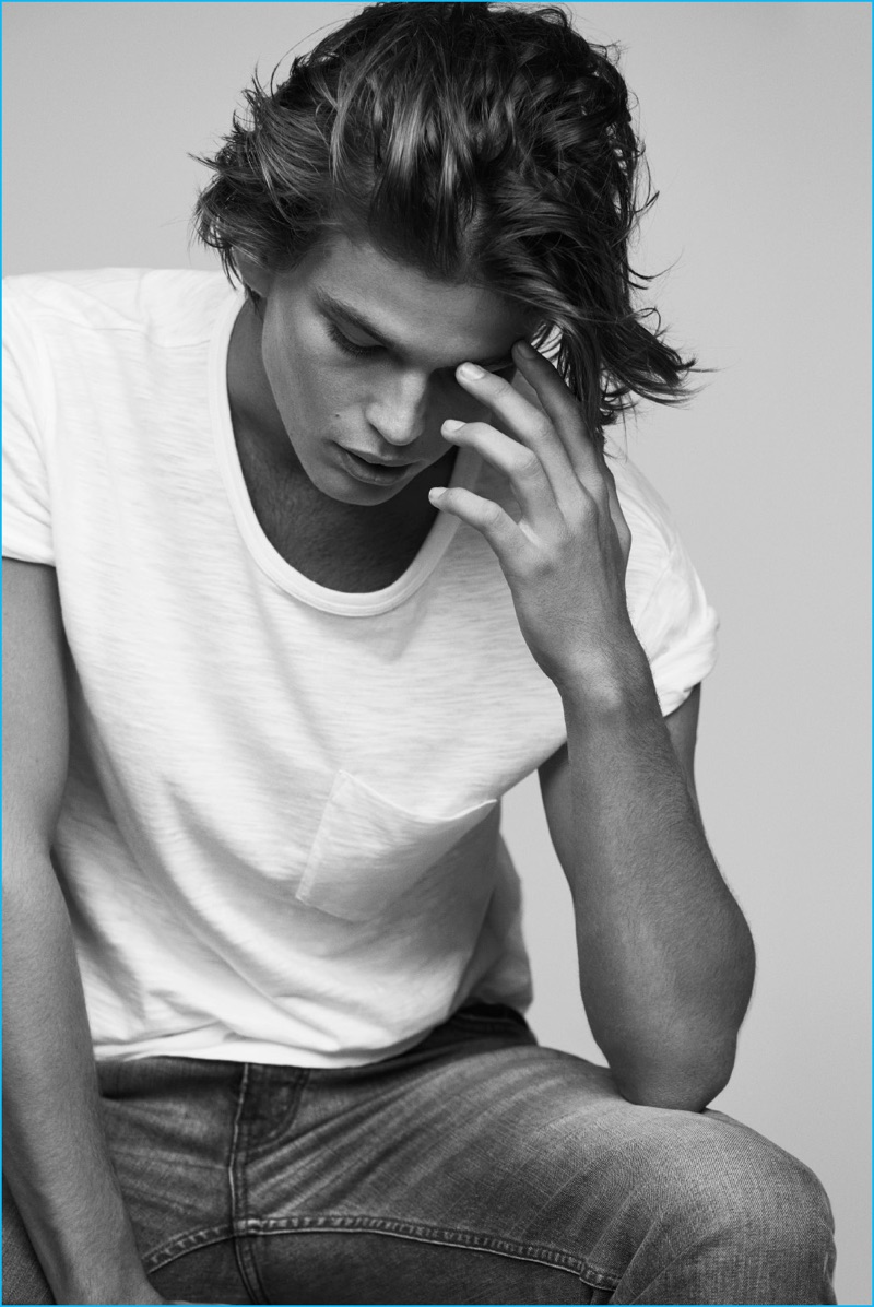 Australian model Jordan Barrett returns home to star in the latest campaign from Country Road. Showcasing the label’s denim with an advertising series entitled, Simple Things, Jordan connects with photographer Lachlan Bailey. Posing in casual essentials, Jordan’s wardrobe includes slub crewneck t-shirts, ripped denim jeans, and bomber jackets.