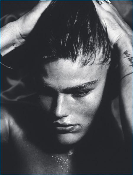 Following a summer outing with H&M and a Bulgarian adventure, Jordan Barrett switches things up. The leading Australian model stars in a gritty cover shoot for the summer 2016 issue of Wonderland. Gracing the pages of the British magazine, Jordan is photographed by Christian Oita. A player in the seedy nightlife scene, Jordan is styled by Matthew Josephs for the daring fashion spread.