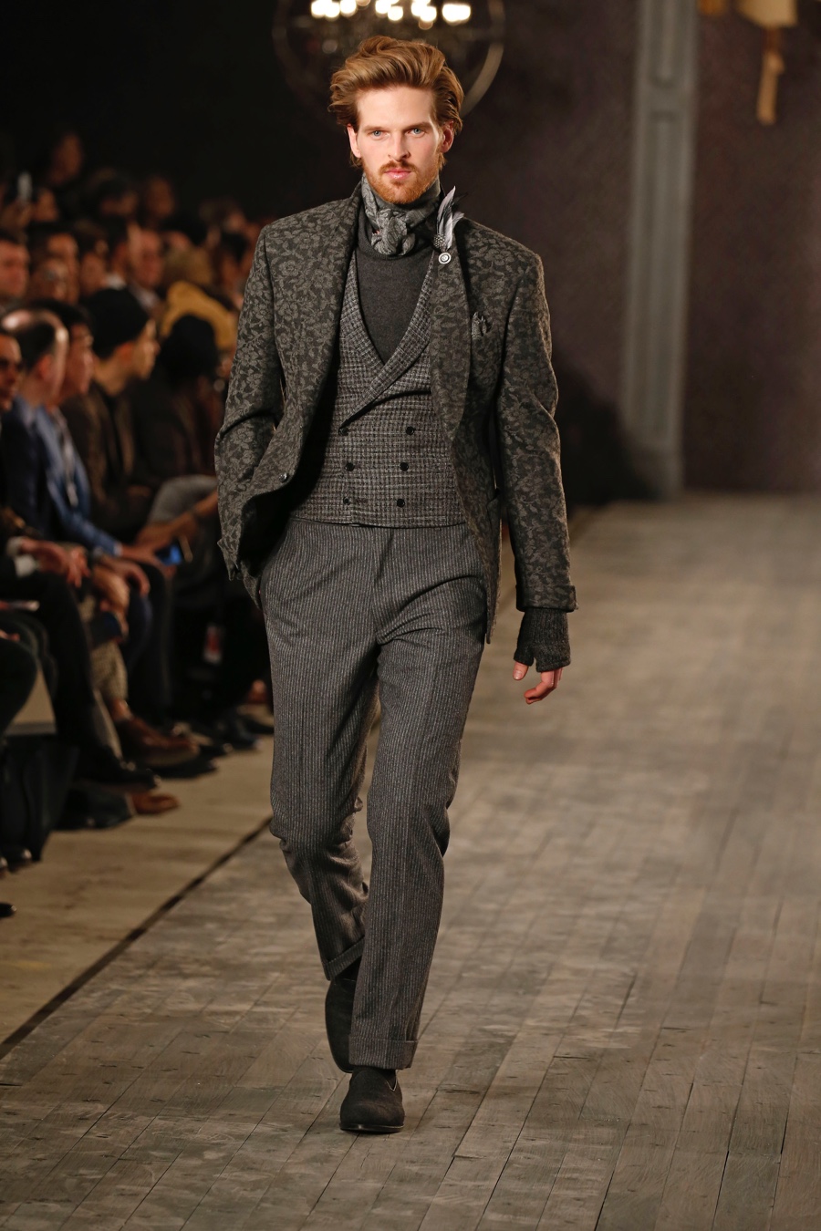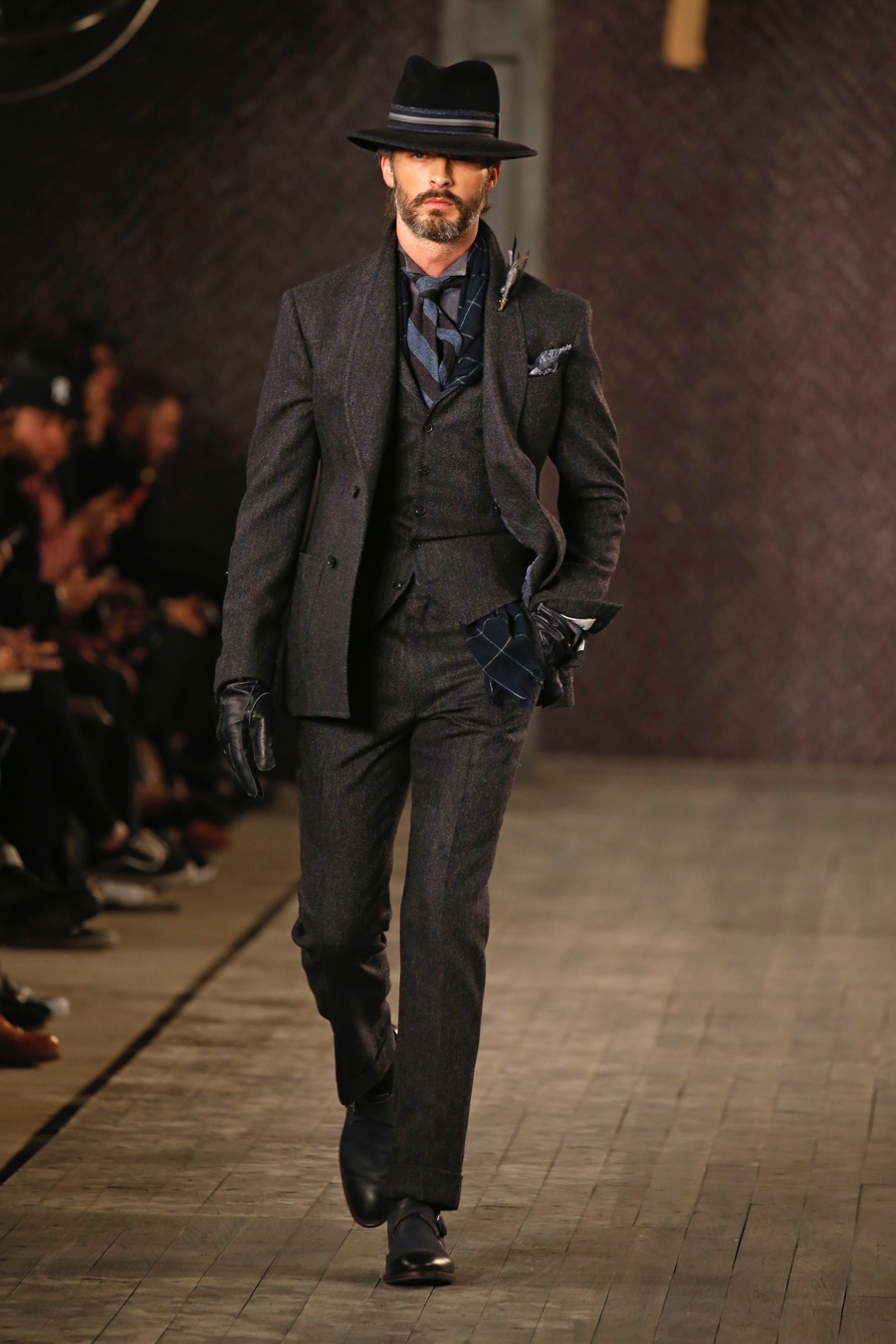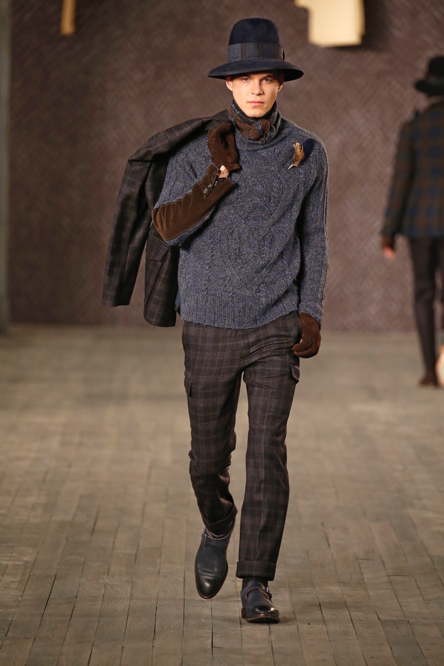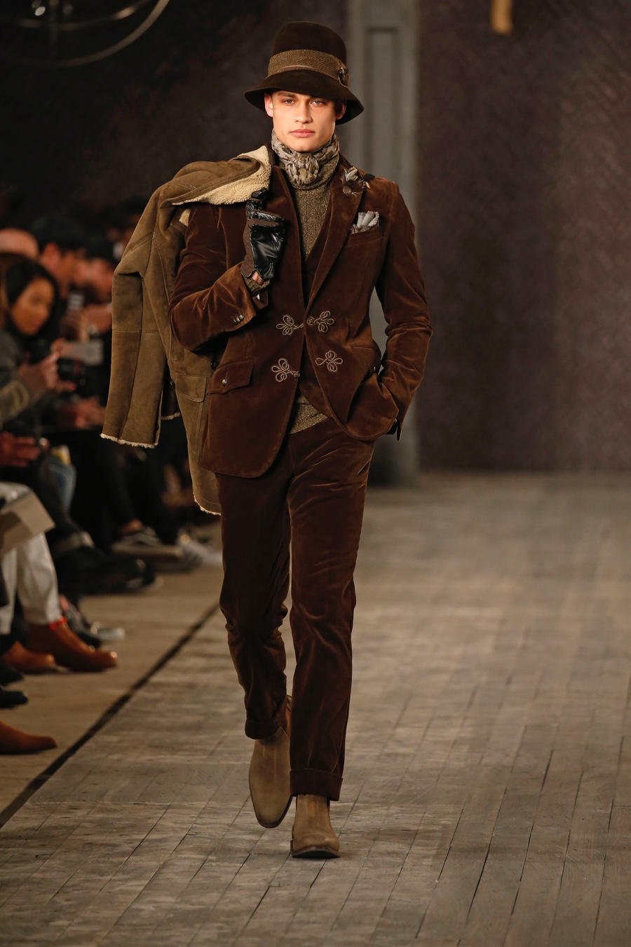 Showcasing sharp tailoring made in the United States at Joseph Abboud Manufacturing Corp. in New Bedford, Massachusetts, the fall presentation also featured collaborations with local artisans. Among impressive numbers from Joseph Abboud, Rawlings produced bags, Albertus Swanepoel contributed hats, Barbara Blank served up ties, Kobold watches, Aston Leathers shearling outerwear and Allen Edmonds, footwear.