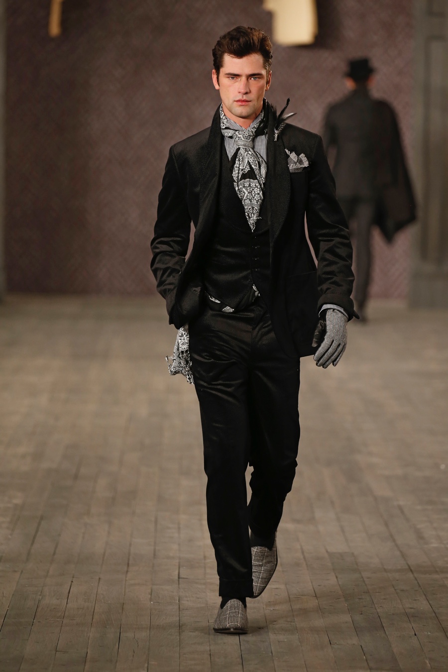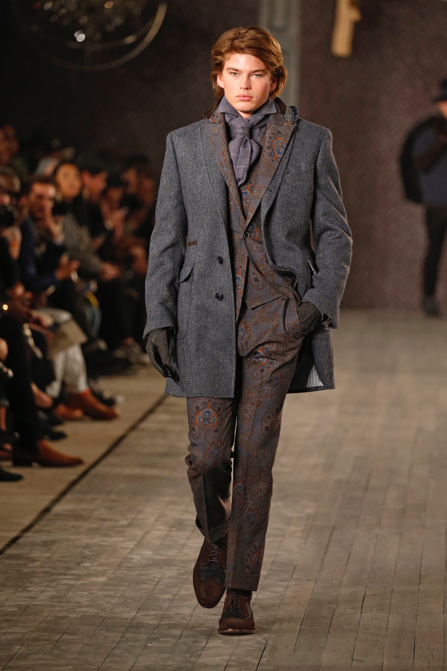 Joseph Abboud was the sartorial peacock of New York Fashion Week: Men in more ways than one. The fashion brand looked to 1960s Savile Row and the peacock revolution for a tribute to America’s style heritage. Taking the catwalk to present the collection, Joseph Abboud rounded up a sensational lineup of top models that included Sean O’Pry, Will Chalker, Tobias Sorensen and Ben Hill.