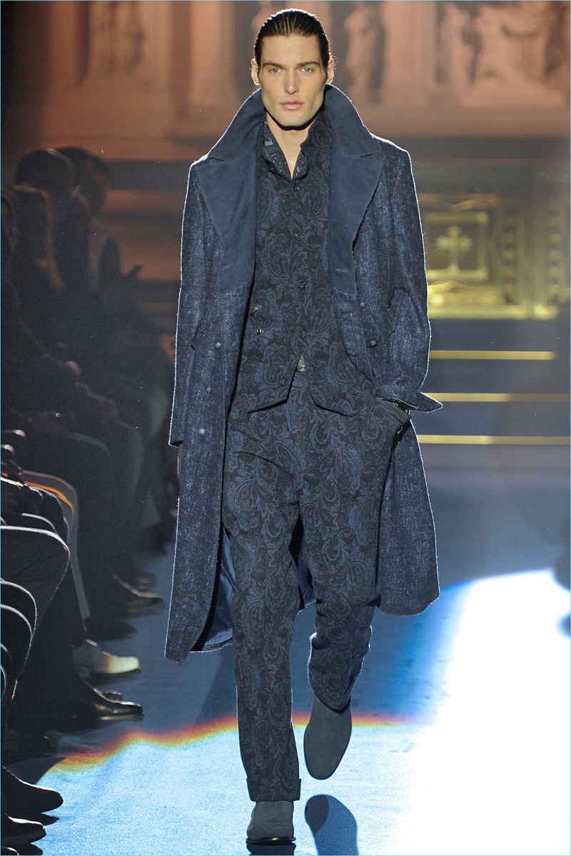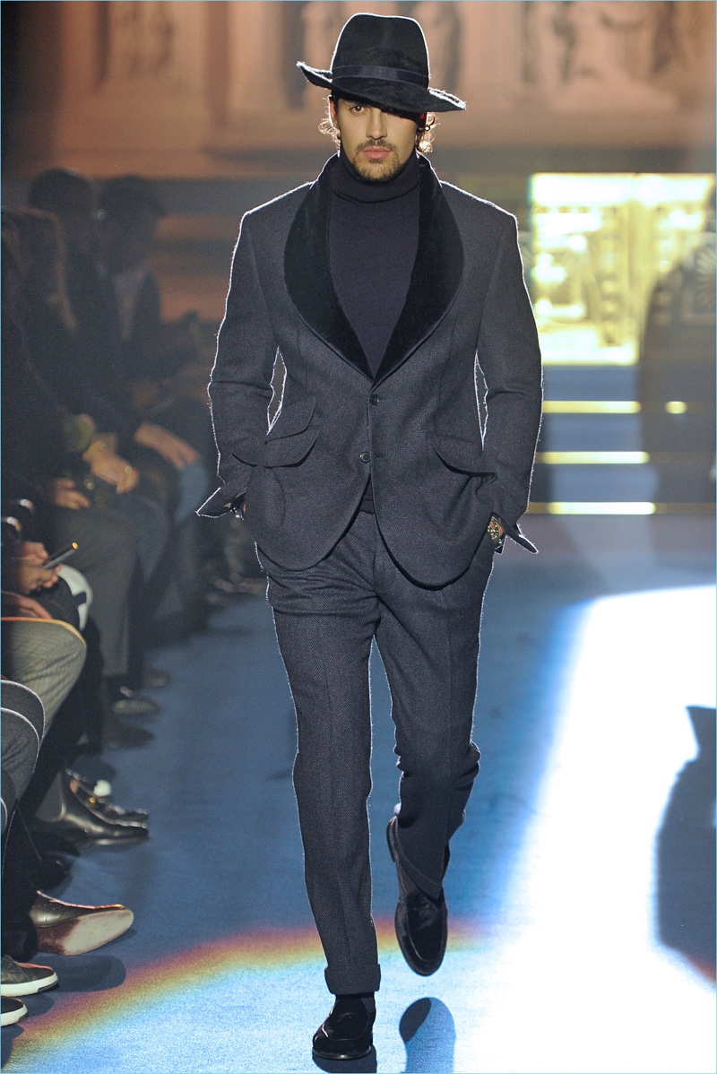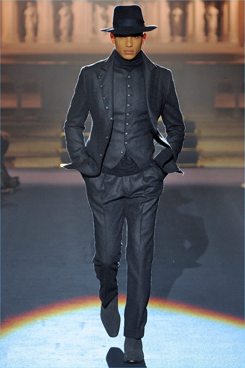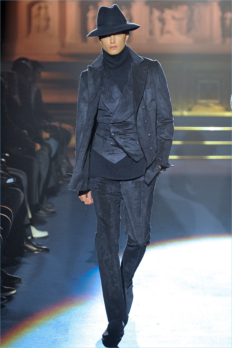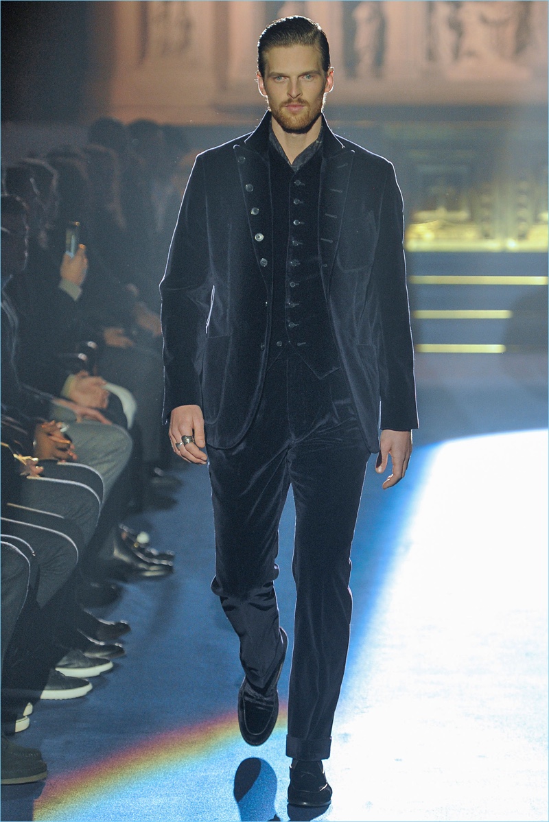 Joseph Abboud delivers a dark spin on sartorial style with his fall-winter 2017 collection. Inspired by great Gothic novels, Abboud plunges into a romantic period. Bringing to mind celebrated authors such as Edgar Allan Poe and Oscar Wilde, the collection balances the dark with the ornate.