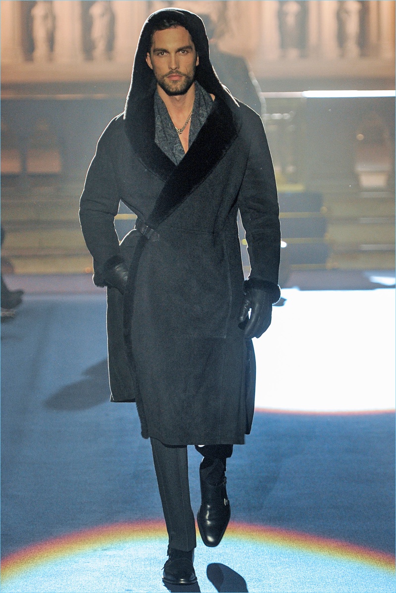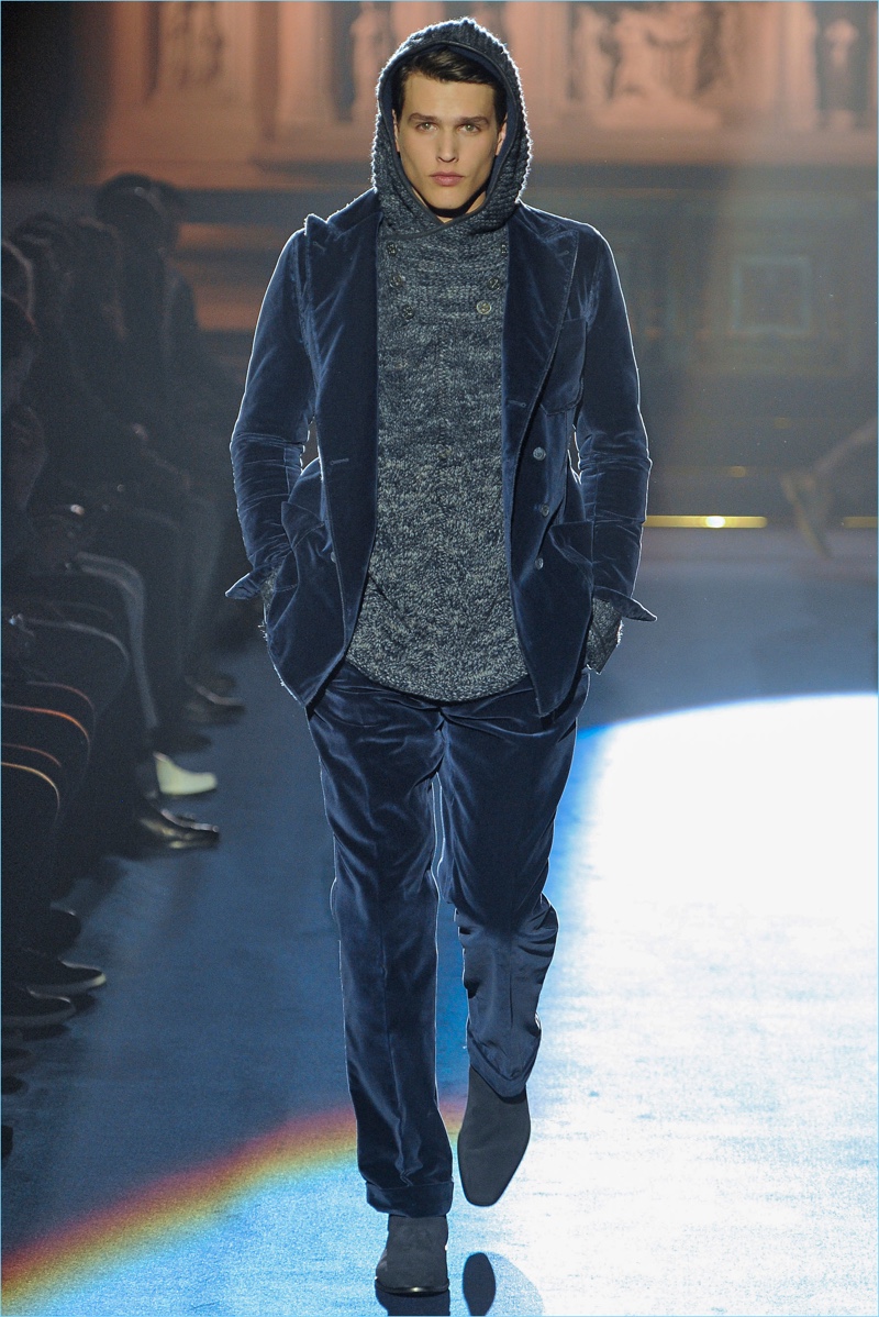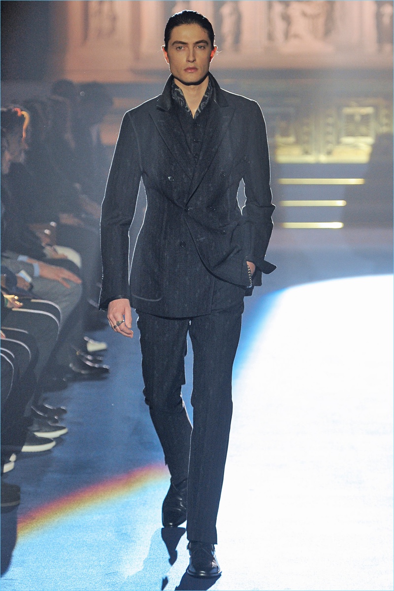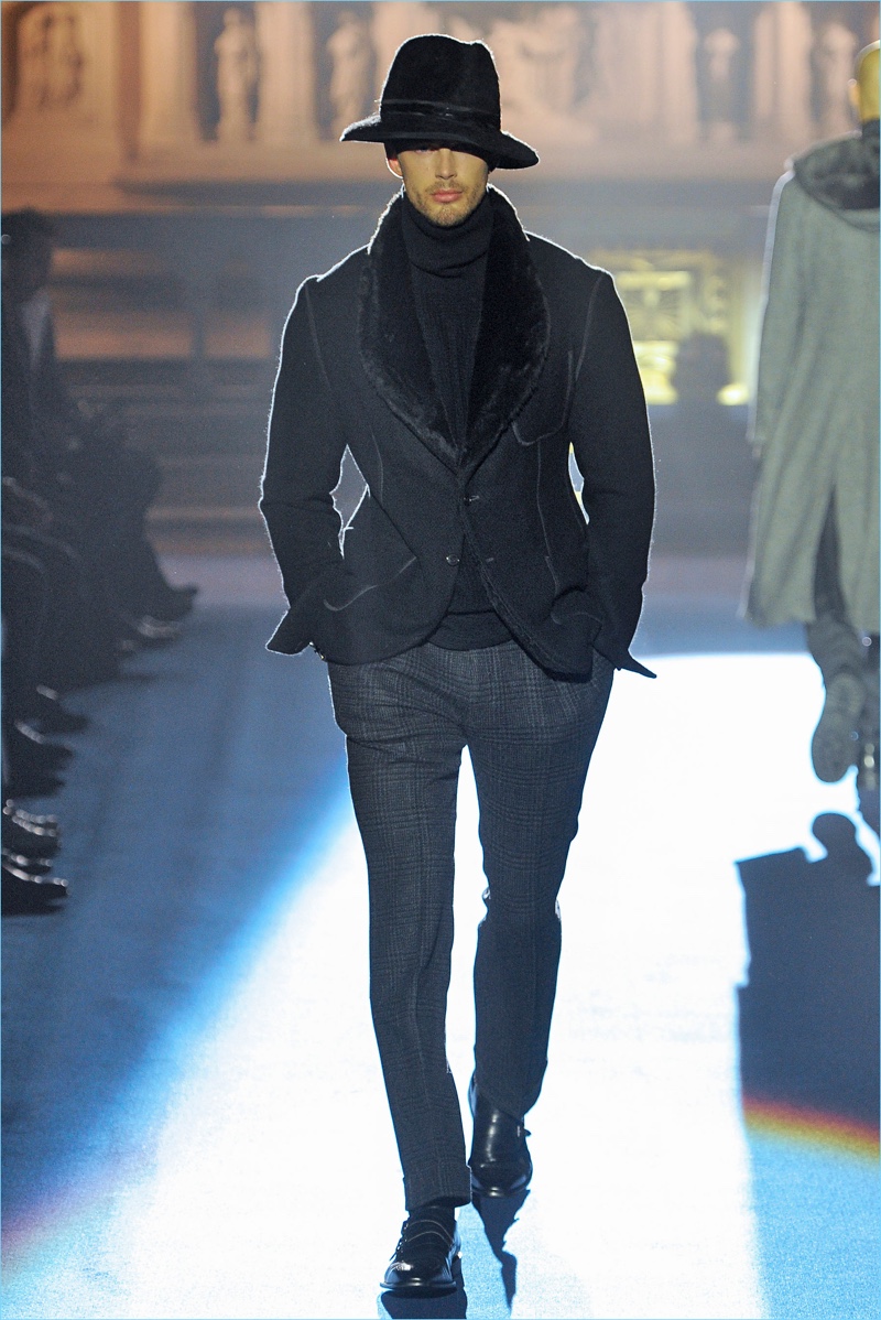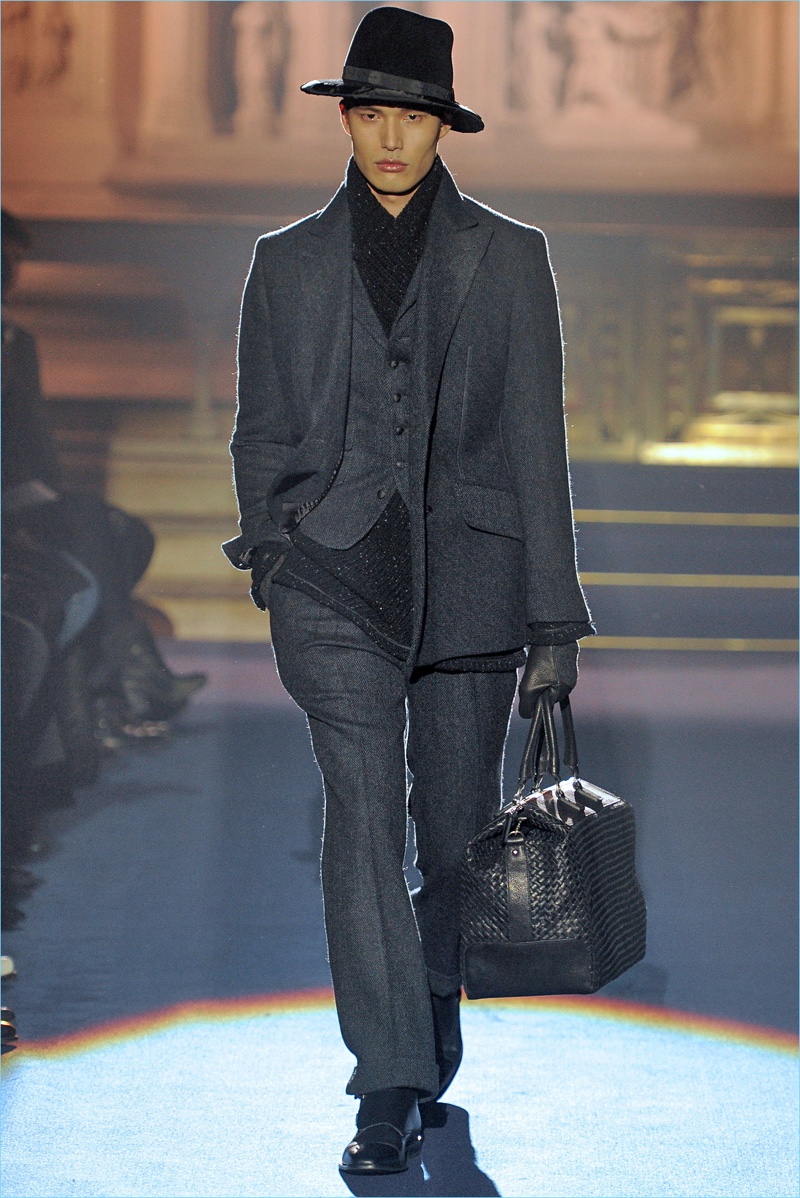 Joseph Abboud delivers a dark spin on sartorial style with his fall-winter 2017 collection. Inspired by great Gothic novels, Abboud plunges into a romantic period. Bringing to mind celebrated authors such as Edgar Allan Poe and Oscar Wilde, the collection balances the dark with the ornate.