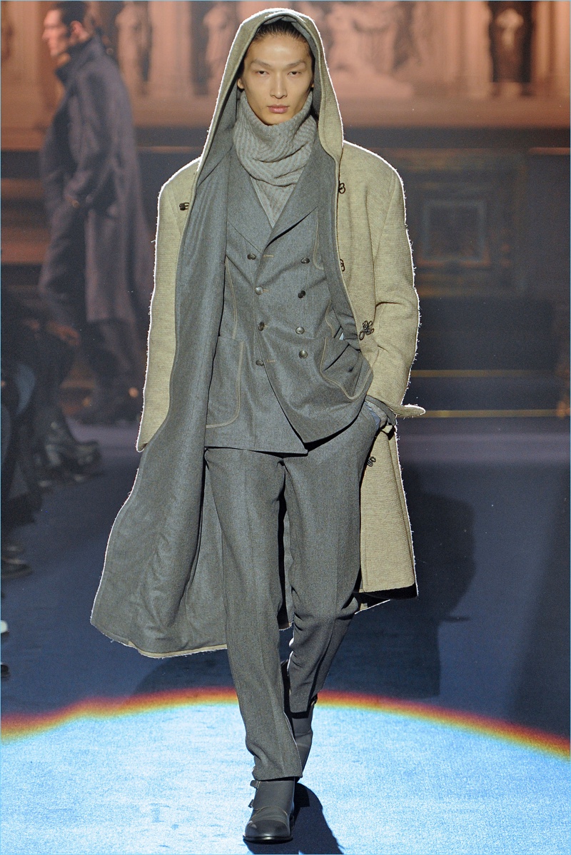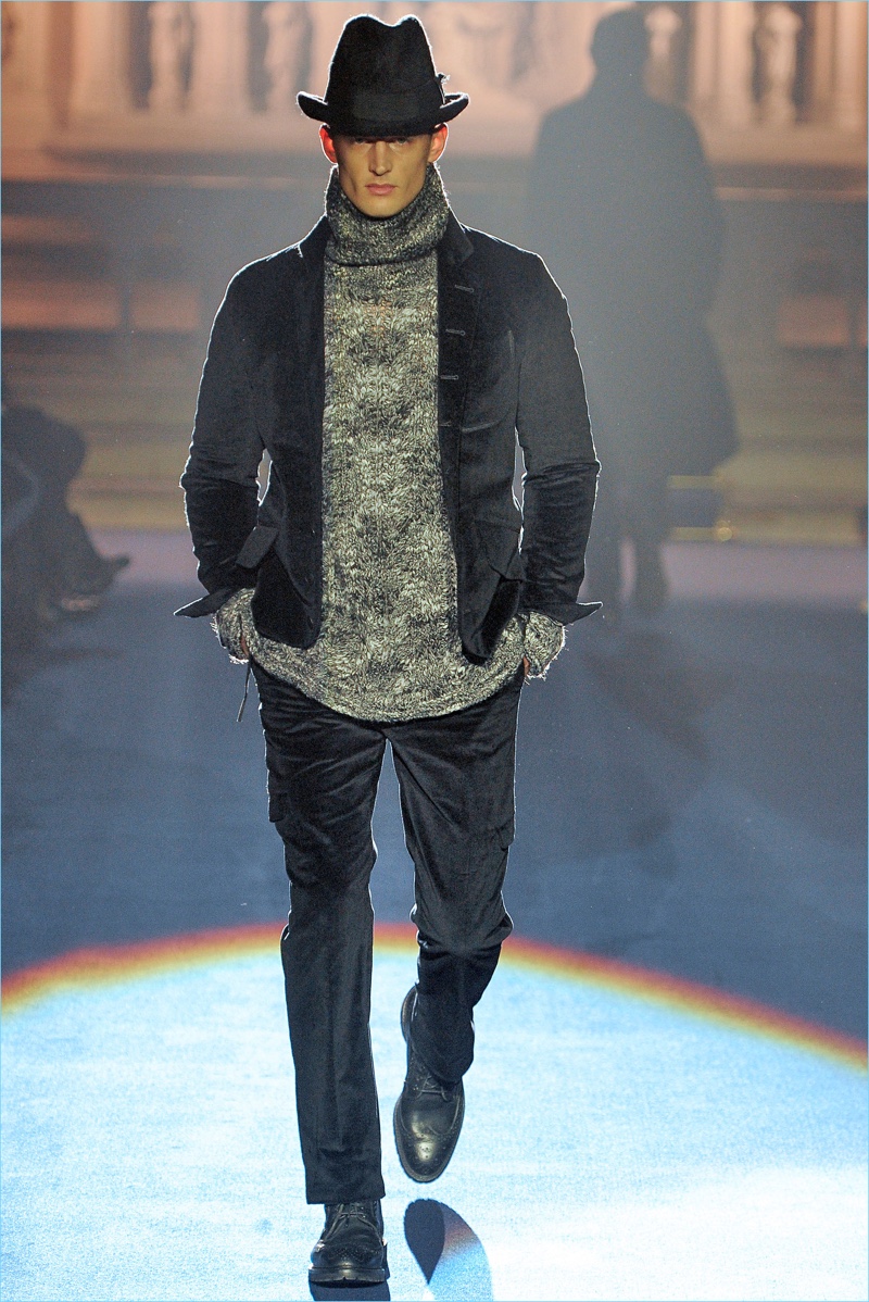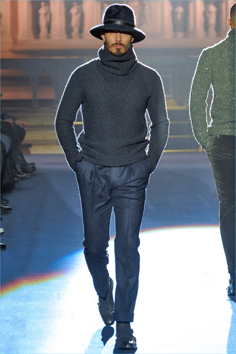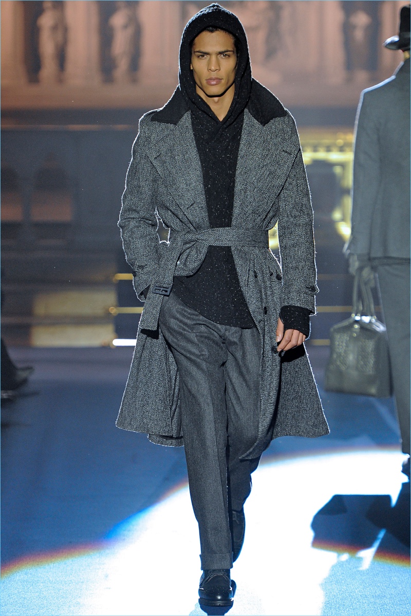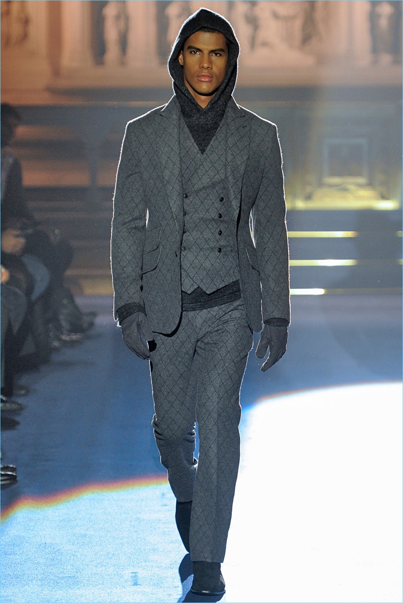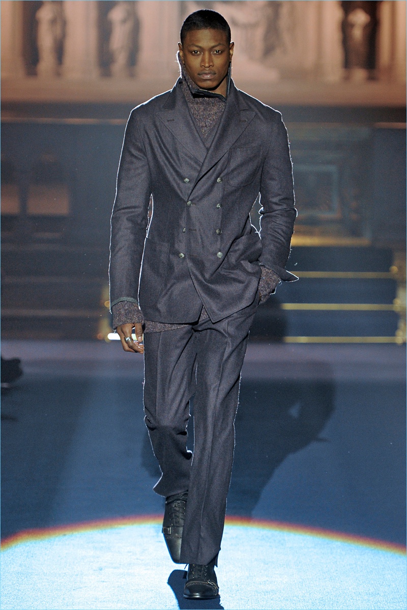 Joseph Abboud delivers a dark spin on sartorial style with his fall-winter 2017 collection. Inspired by great Gothic novels, Abboud plunges into a romantic period. Bringing to mind celebrated authors such as Edgar Allan Poe and Oscar Wilde, the collection balances the dark with the ornate.