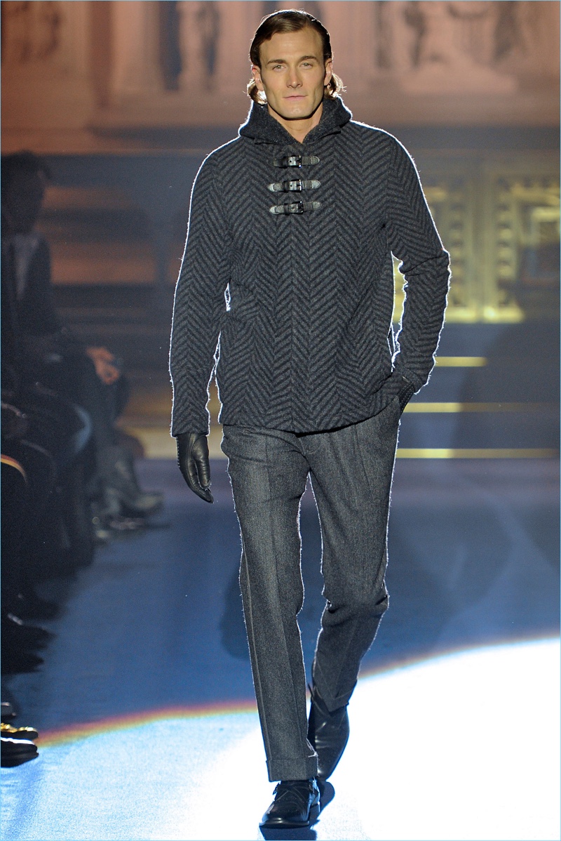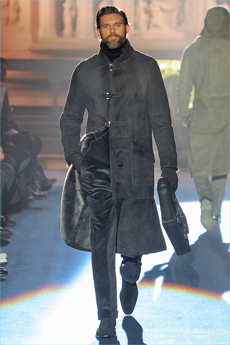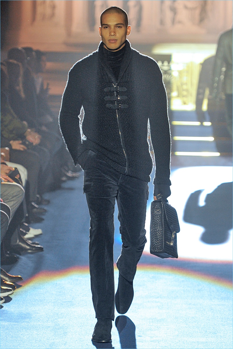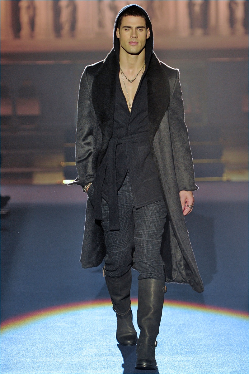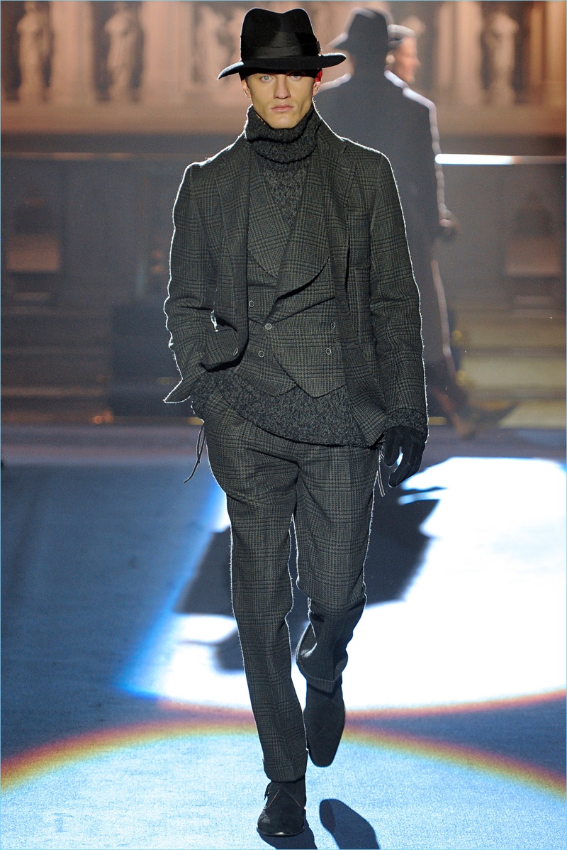 Joseph Abboud delivers a dark spin on sartorial style with his fall-winter 2017 collection. Inspired by great Gothic novels, Abboud plunges into a romantic period. Bringing to mind celebrated authors such as Edgar Allan Poe and Oscar Wilde, the collection balances the dark with the ornate.