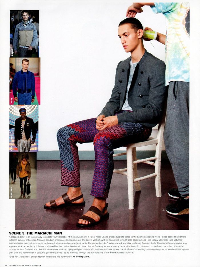 Commit to Get Fit–Select model Josh McLellan and photographer George Harvey are i-D’s first choice to portray the latest menswear trends straight from the runway, as it is presented in seven scenes. Highlighting tropical prints, Greek-inspired looks, dress shorts and more, Josh dons some of the top labels from the past season including Jil Sander, Lanvin and Givenchy as styled by Elgar Johnson.