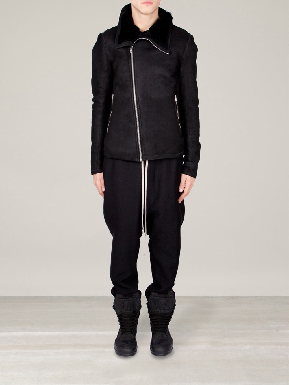 Jude Law Spotted in Rick Owens Leather Shearling Jacket
