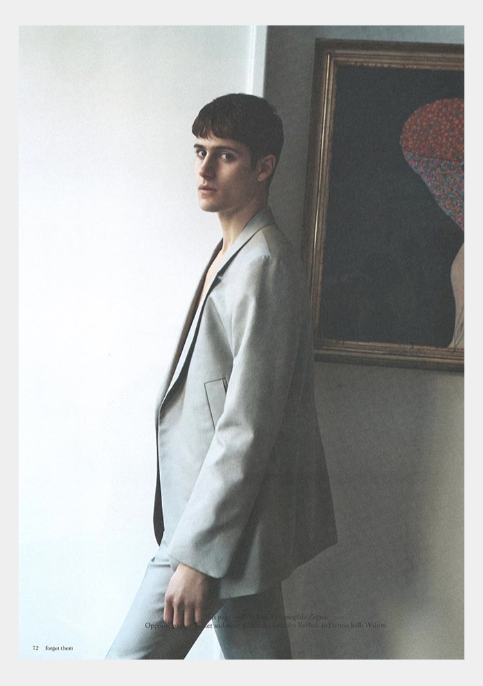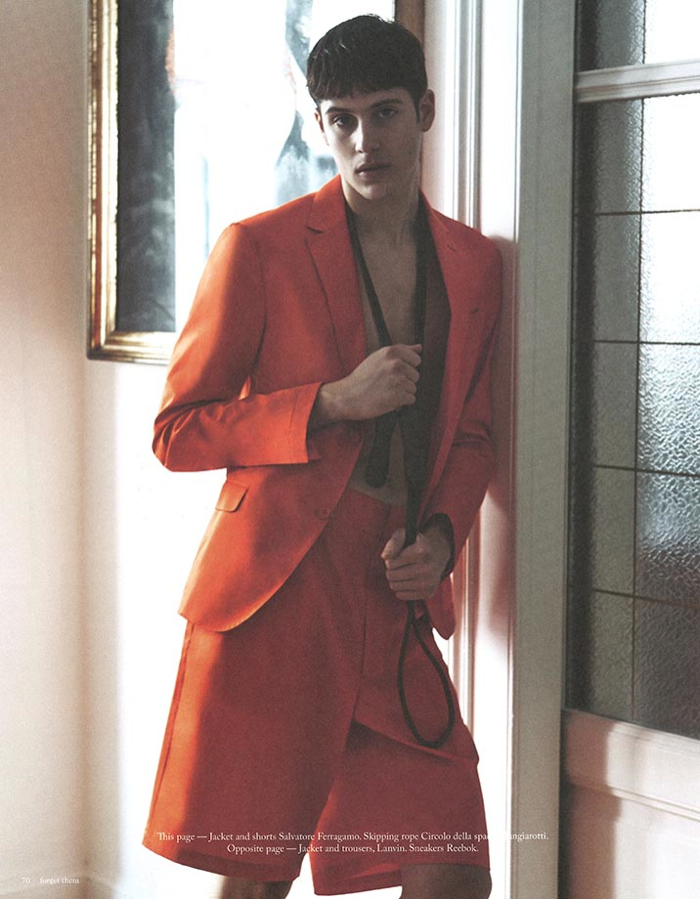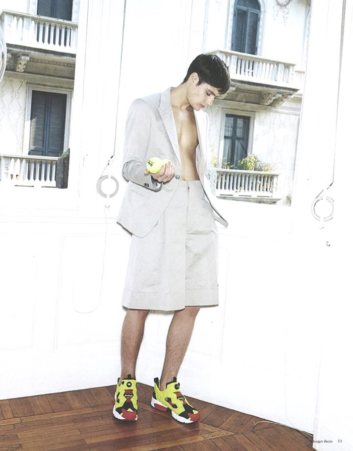 Sporty Nature–Starring in a new editorial for the pages of Forget Them magazine, Bananas model Julian de Gainza charms in photos by Alessandro Furchino. Adding a sporty twist to smart suiting separates adapted for the modern man, stylist Ilario Vilnius plays with a fun undertone. Posing in bright colors or reworked silhouettes, Julian provides quirky imagery with the juxtaposition of the sports motif.