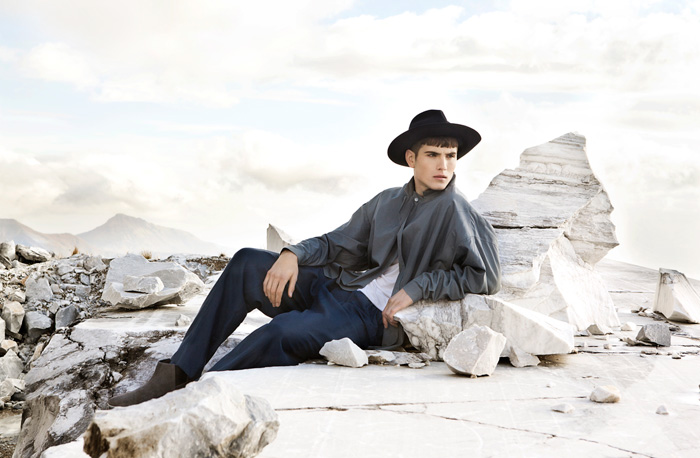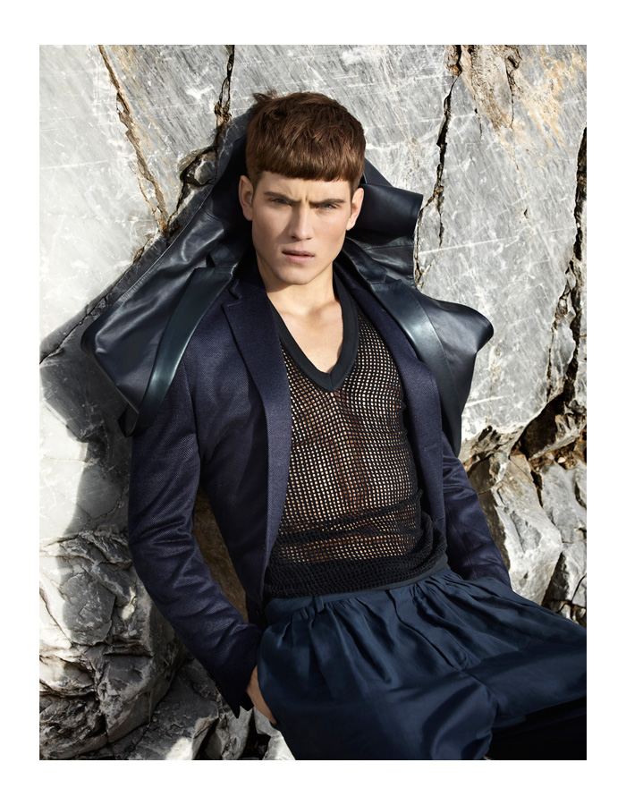 Cool Gaze–L’Uomo Elite model Julius Pfister stars in a picturesque shoot at the Carrara marble quarries for the spring issue of L’Officiel Hommes Germany. Photographed by Magda Wunsche & Samsel (76 Management), Julius dons a slick wardrobe, consisting of relaxed suiting separates and mesh pieces, pulled together by stylist Corinna Brix. / Grooming by Arzu Kücük (Agentur Phoenix).