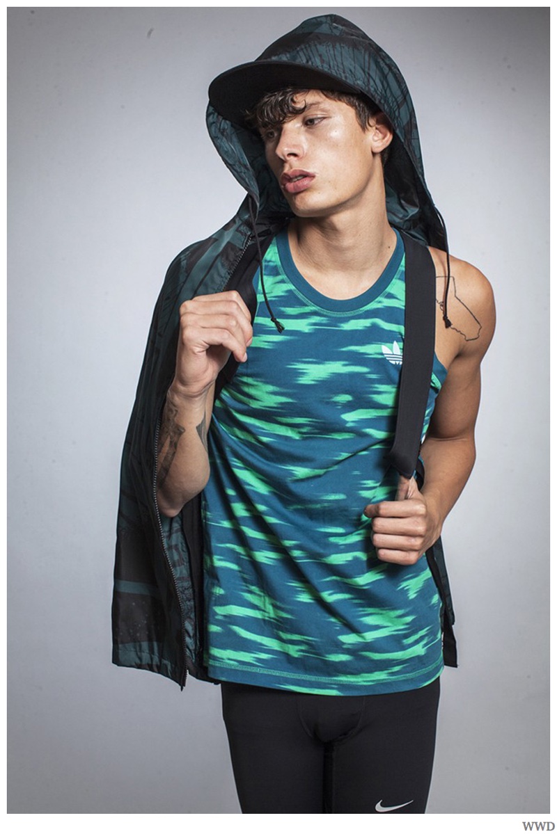 Connecting with WWD fashion editor Alex Badia, models Jullien Herrera and Oli Lacey work up a sweat for a new style feature. Sporting active fashions from the likes of NIKE, Y-3, Adidas Originals and Alexander Wang, the models embrace an athletic attitude as they hit the studio, posing for the lens of photographer Silja Magg.