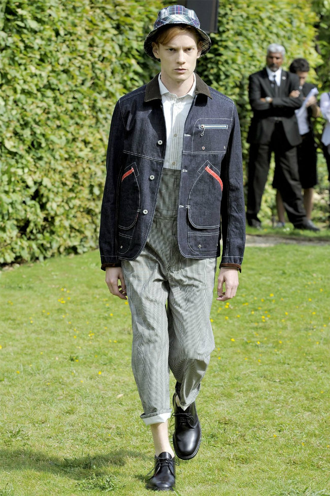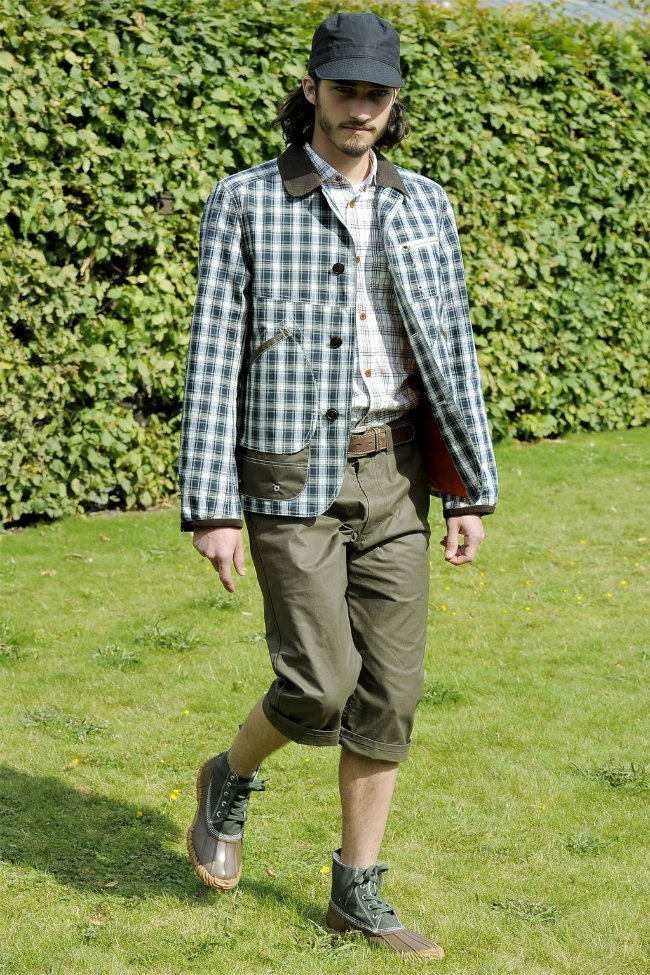 Fashion Harvesting–With a healthy green lawn perfectly groomed, the countryside barnyard party was set for Junya Watanabe’s spring 2012 collection. The literal interpretation of farmer uniforms produced desirable and uncomplicated pieces in the likes of overalls in denim and plaid, jeans with patchwork as well as rubber applications worn with durable rubber boots. Meanwhile classic utilitarian jackets and fitted blazers came together for a casual outing complemented by quirky detailing accompanied by charming prints. Alluding the expected sense of luxury, Junya Watanabe continues to stand apart from the fashion crowd with fetishistic seasonal themes.