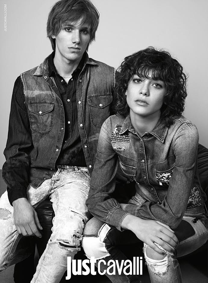 Models Louis Bauvir and Steffy Argelich don denim for Just Cavalli's spring-summer 2016 campaign.Pin