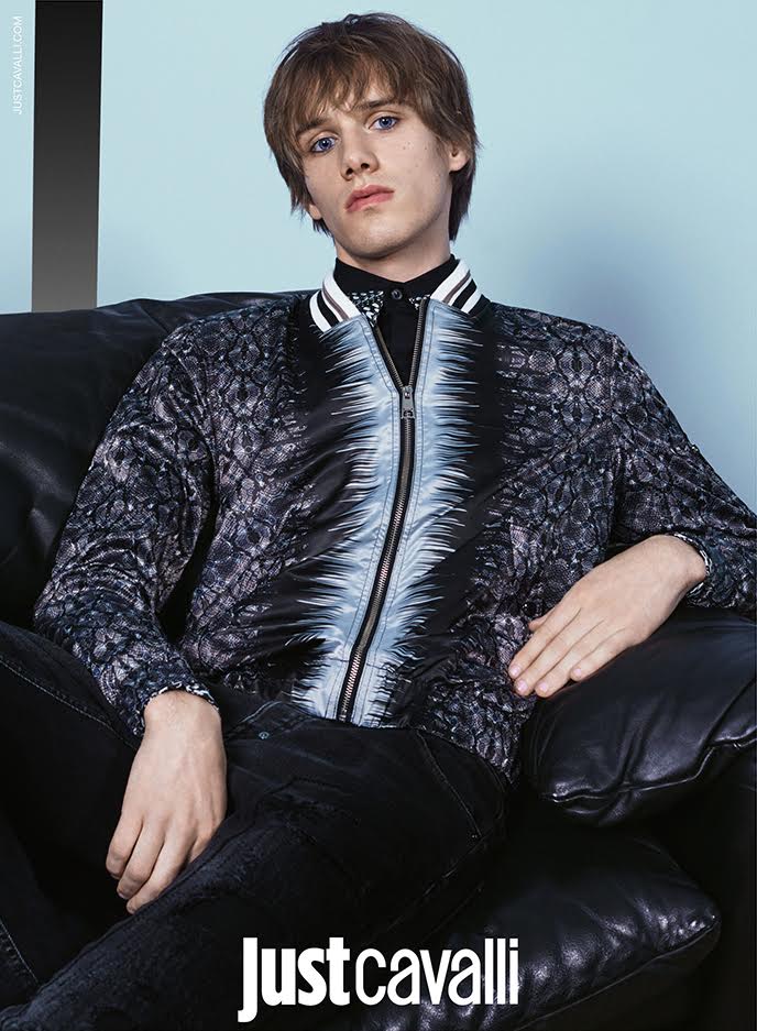 Louis Bauvir models a patterned bomber jacket for Just Cavalli’s spring-summer 2016 campaign.