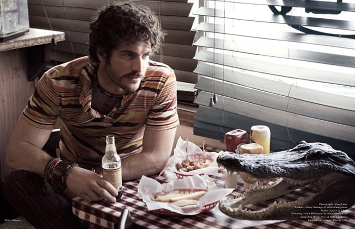 The face of JOOP! Homme Sport, Justice Joslin’s latest stint finds himself gracing the pages of Schön! magazine. Embracing southwestern fashions, Justice is photographed by Greg Lotus. Posing with crocodiles, Justice tackles the story with a splash of humor. Donning a wardrobe of great character, Justice is styled by Danny Santiago. The top model’s wardrobe includes western style shirts, denim jackets and more from brands such as Levi’s, RRL Ralph Lauren and G-Star Raw.