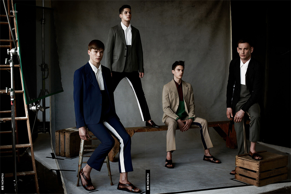 Menswear–Focusing his lens on spring most wearable and desirable formal styles, photographer Mariano Vivanco shoots a polished spread published in the April 2013 issue of Chinese GQ. Teaming up with stylist Sean Spellman, Vivanco beautifully captures models Justice Joslin, Travis Cannata, Logan Macrae (Ford New York), Adrian Cardoso, Otto Pierce (Wilhelmina), Jordan Torres, Seijo Imazaki, Seth Kuhlmann (Soul) and Satoshi Toda (New York Model Management) in an array of impeccable spring looks. From Emporio Armani’s revisited classics, to Gucci’s eclectic elegance, including Salvatore Ferragamo’s playful refinement, the boys are definitely a vision of contemporary and impeccable style. / Hair by Fernando Torrent. Makeup by Ayami Nishimura.