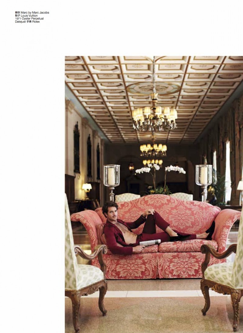 The Good Life–Photographed by Blair Getz Mezibov for the August issue of Chinese GQ, model Justice Joslin lives life to the fullest. With a wardrobe that includes chic pieces from labels such as Gucci, Louis Vuitton, Prada and many more, assembled by stylist Grant Woolhead, Justice perfectly embodies the concept of modern luxury. Wearing the timeless black tuxedo, or lounging on the grass in casual designs, Justice gets ready to spend a season in glamorous style.
