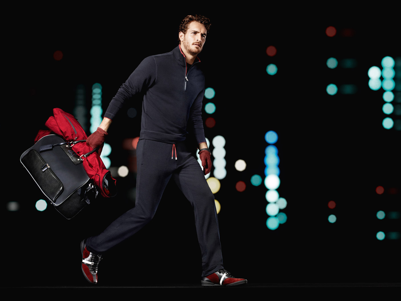Sport & Style–To promote the fall/winter 2013 collection of its Sport line, Italian brand Ermenegildo Zegna enlists model Justice Joslin, who appears before the lens of David Sims, who previously lensed Zegna’s main campaign and Z Zegna’s outing. Joining creative forces once more with stylist Joe McKenna, Sims captures the Ford New York model surrounded by the countless lights of a city at night. Decked out in a fall collection that revisits sportswear with a more urban twist, Justice wears quilted numbers and sporty designs, paired with leather jackets, classic jeans and innovative fabrics, that also reveal an eco-friendly attitude.