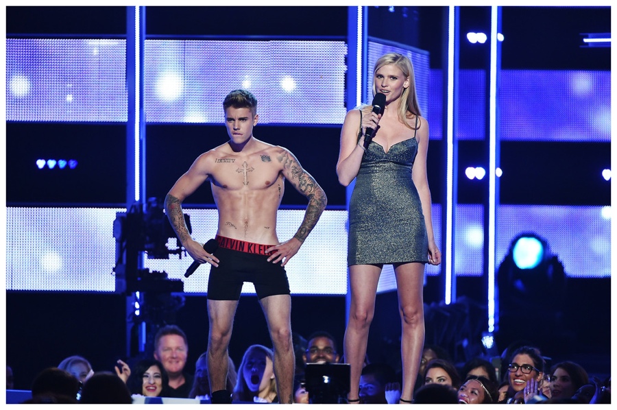 Bringing the worlds of fashion and music together, ‘Fashion Rocks’ was relaunched this year. The grand night of entertainment kicked off at the Barclays Center of Brooklyn on September 9th. Introducing Rita Ora, singer Justin Bieber took the stage with Calvin Klein model Lara Stone. Playing into the rumors that he has been signed as a face of Calvin Klein, Bieber stripped down to his Calvin Klein underwear and gave the world stage his best strut. Do we have a modern-day Marky Mark on our hands?