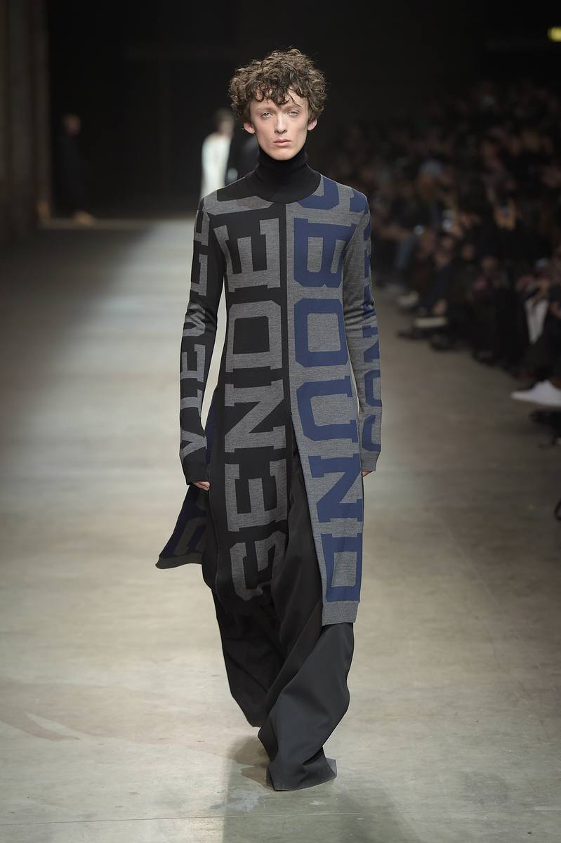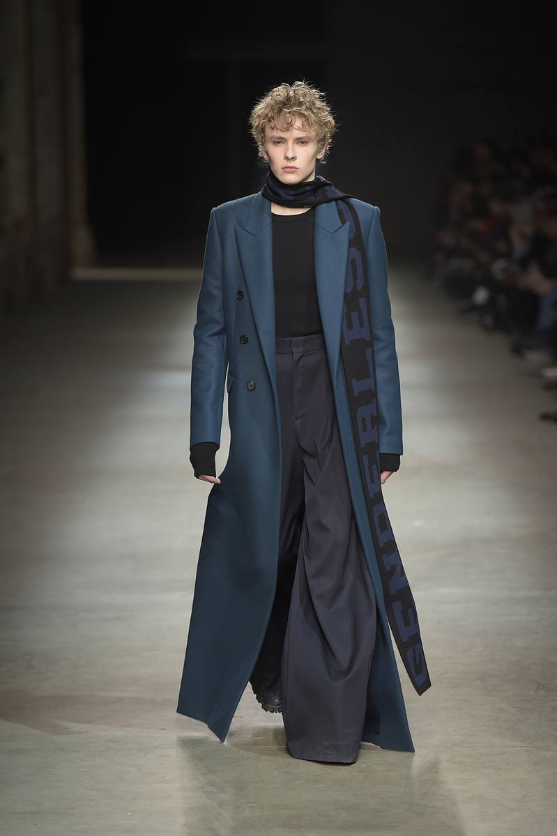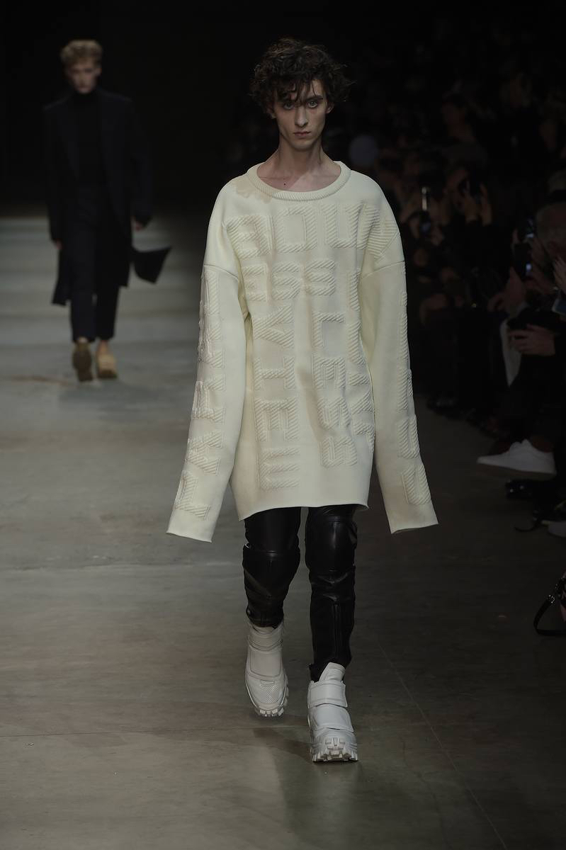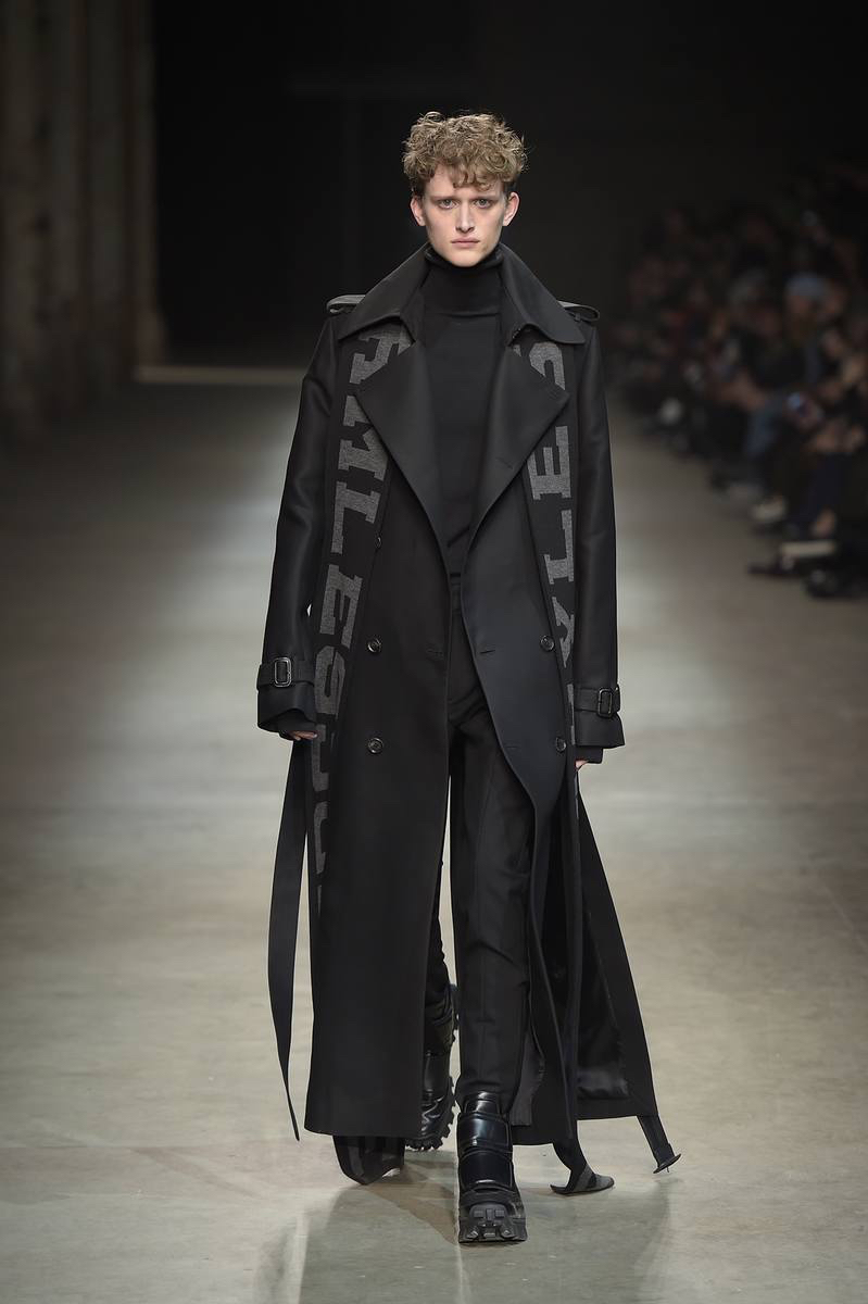 Pitti Uomo’s guest designer for fall-winter 2016, JUUN.J brought its oversized collection to Florence with a loosely tailored rift on futuristic style. Kicking off the show and garnering great interest, models took to the enormous catwalk in black and white shearling coats that made quite the dramatic impression.