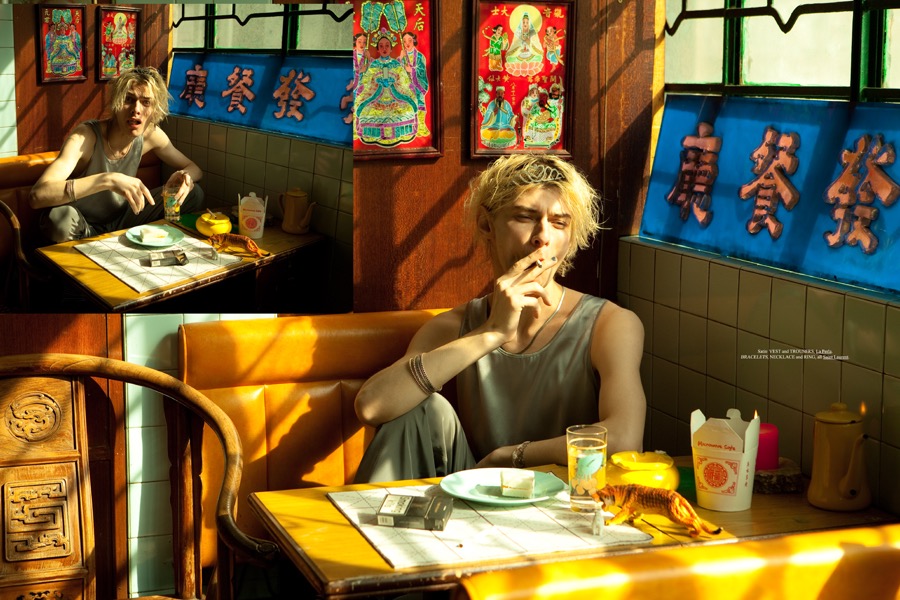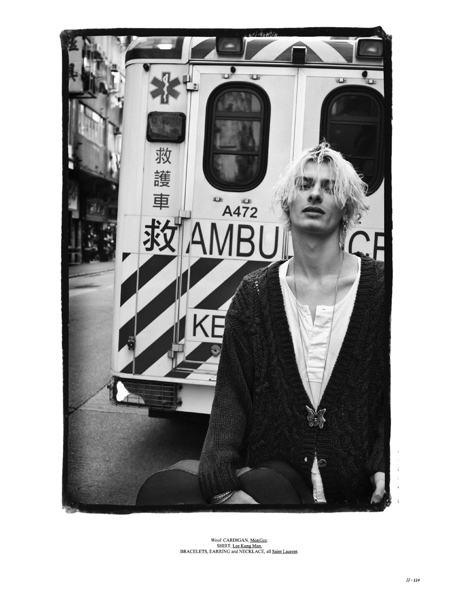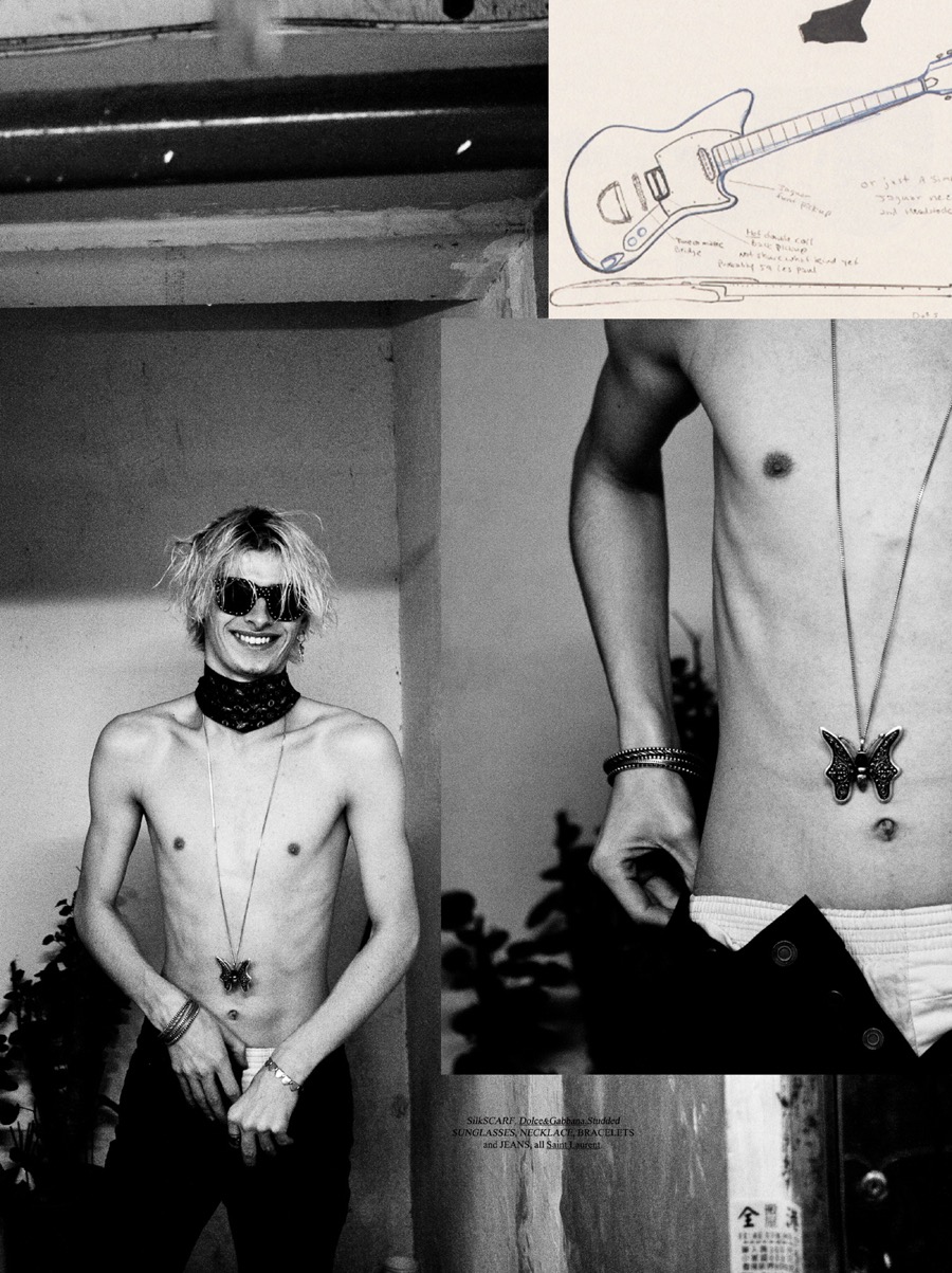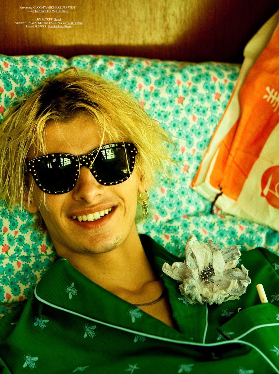 Nirvana frontman Kurt Cobain continues to inspire as Juvenile Journal looks to the music legend as muse for its spring-summer 2016 issue. Grunge style is revisited by Cheryl Leung as she pulls together a current designer wardrobe. Clad in Saint Laurent, Gucci, Dolce & Gabbana and more, model Ivan Claudiu Vlad is the story’s bleach blond protagonist. Charming in images, which feature statement pieces such as Saint Laurent’s SL 98 California sunglasses, Ivan is photographed by Baldovino Barani. / Grooming by Gloomy (HK Makeup Artist) using Tom Ford for Men Skincare.