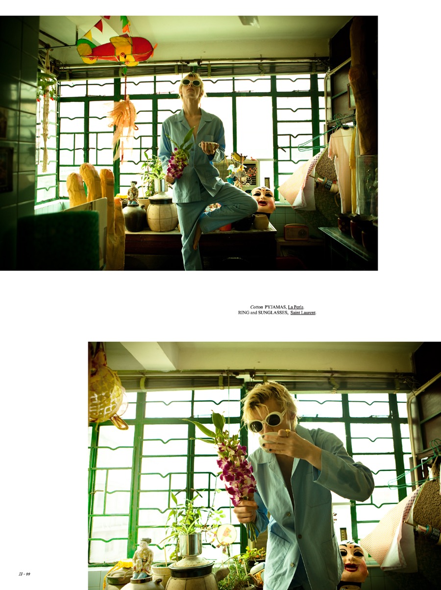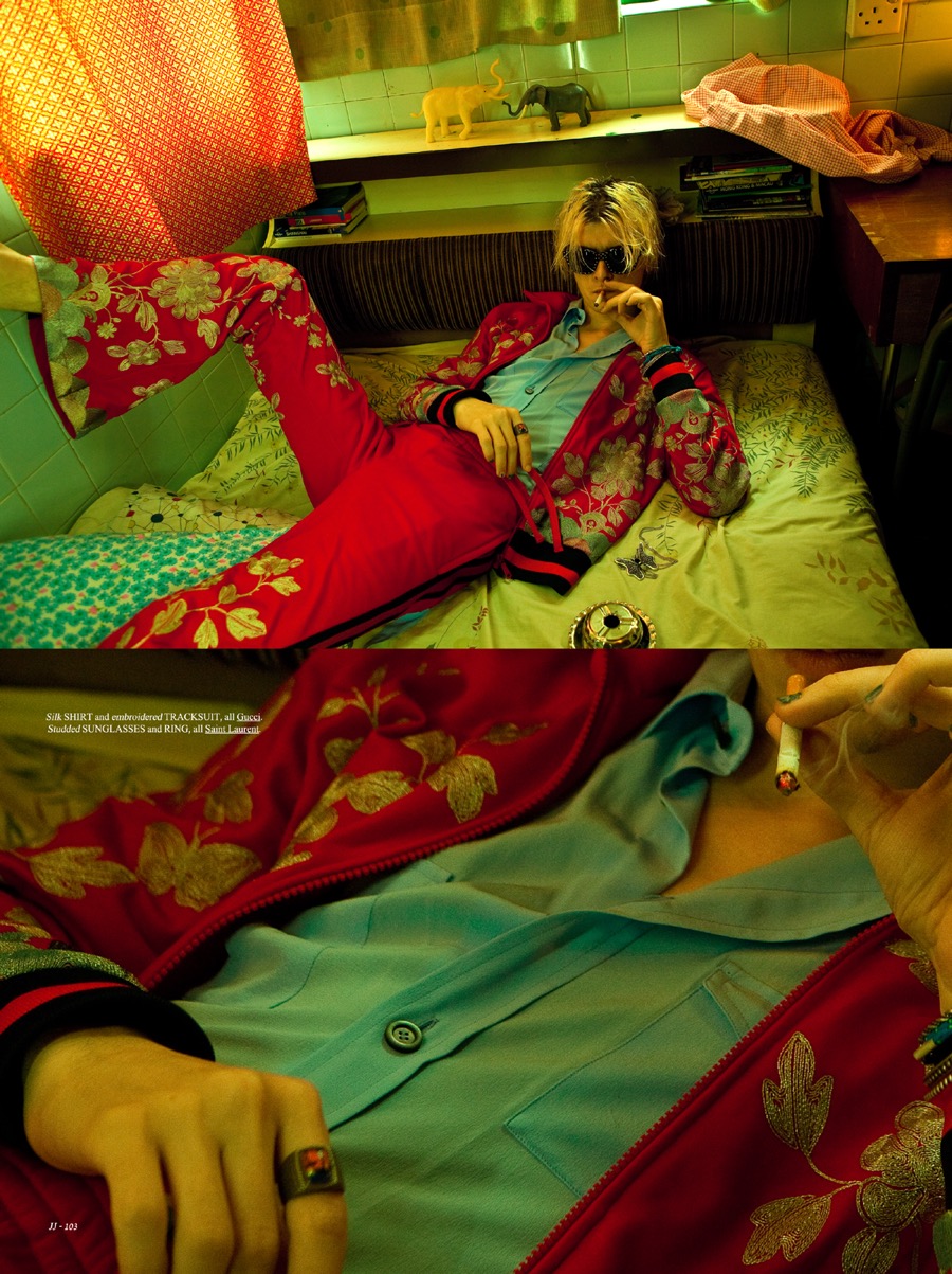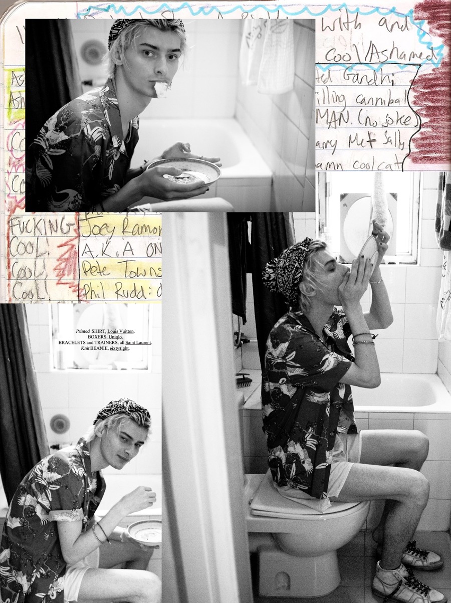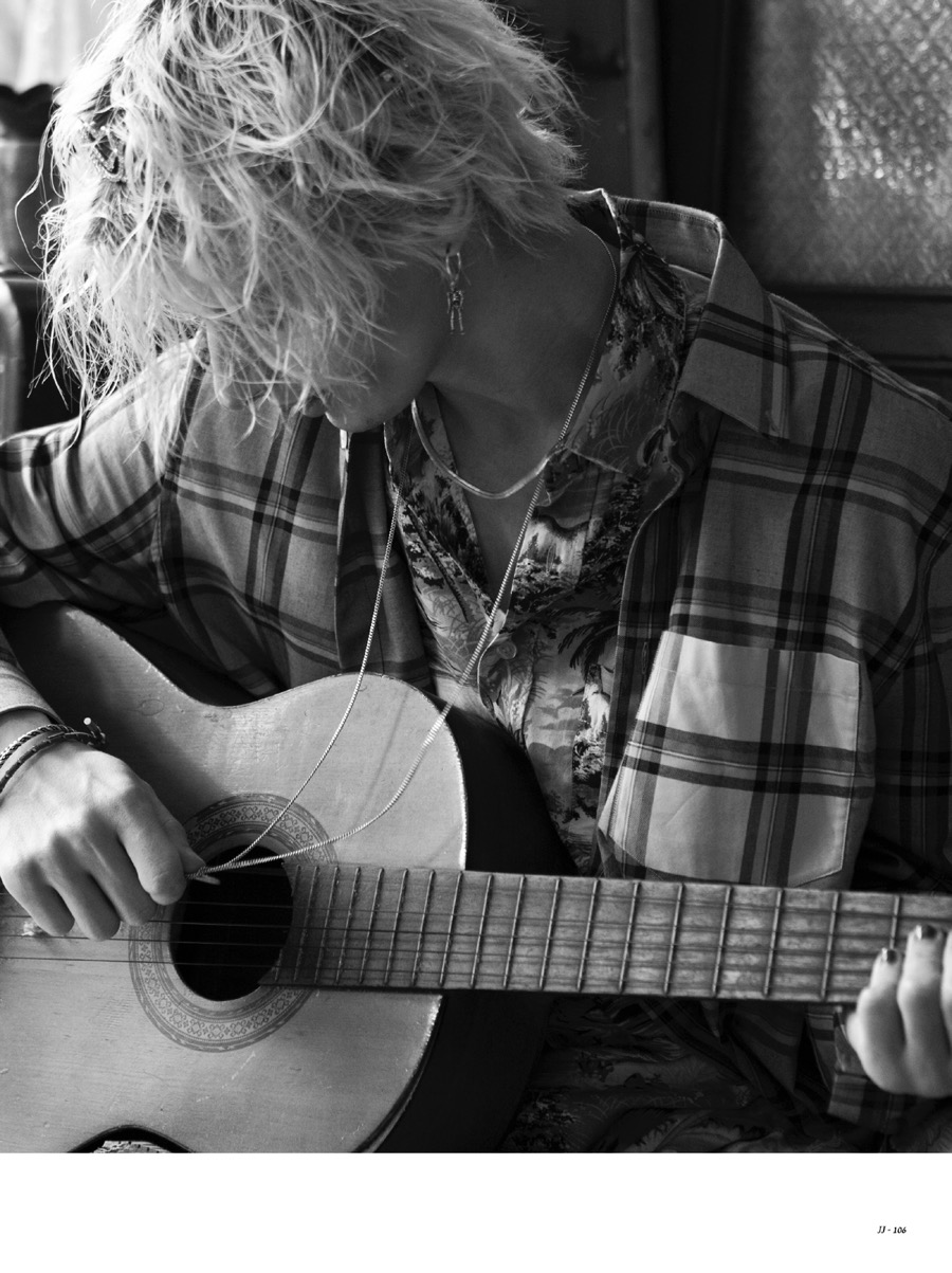 Nirvana frontman Kurt Cobain continues to inspire as Juvenile Journal looks to the music legend as muse for its spring-summer 2016 issue. Grunge style is revisited by Cheryl Leung as she pulls together a current designer wardrobe. Clad in Saint Laurent, Gucci, Dolce & Gabbana and more, model Ivan Claudiu Vlad is the story’s bleach blond protagonist. Charming in images, which feature statement pieces such as Saint Laurent’s SL 98 California sunglasses, Ivan is photographed by Baldovino Barani. / Grooming by Gloomy (HK Makeup Artist) using Tom Ford for Men Skincare.