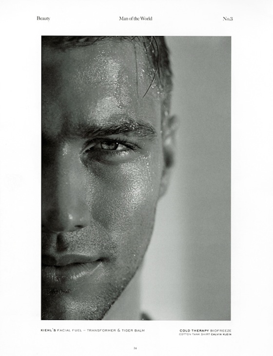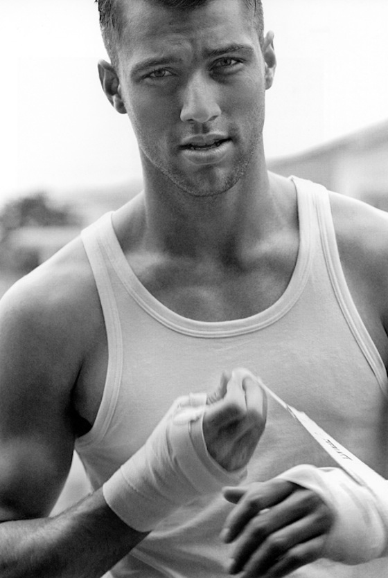 Masculine Superlative–Male beauty is the subject of this stunning black & white editorial, lensed by John Balsom, featured in Man of the World’s latest issue. Focusing his lens on Ford New York models Kacey Carrig, Justice Joslin, Travis Cannata and Ryan Heavyside, Balsom provides a series of timeless images, where the models’ stunning features definitely steal the show. Styled by Sean Spellman in basic sportswear pieces, the boys strike stunning poses in basic tank tops, striped numbers and sweaty cotton tees, essential garments that accompany them during their intense and sweaty workouts.