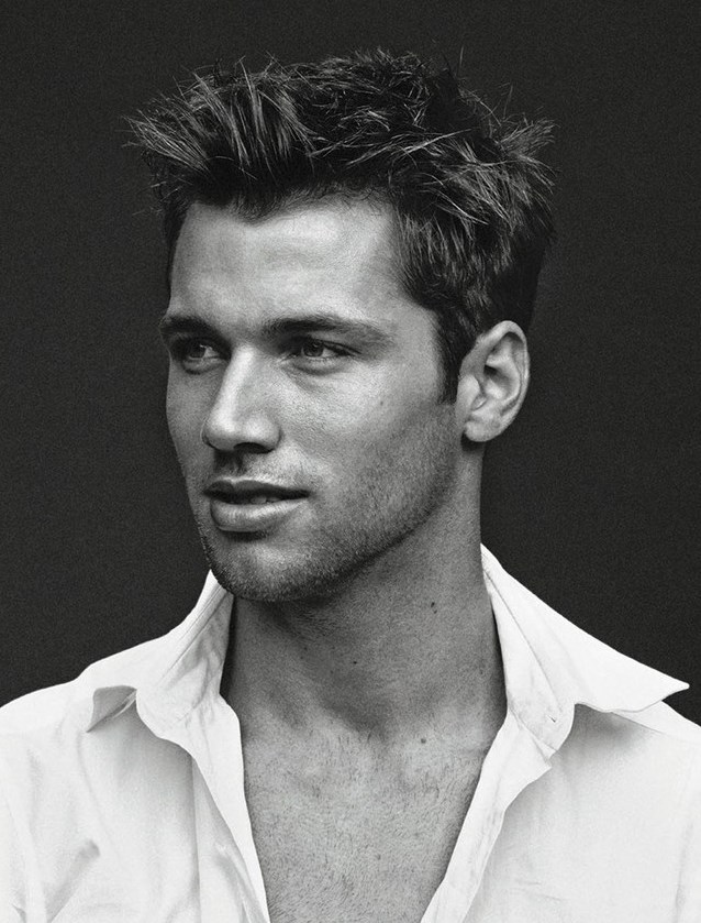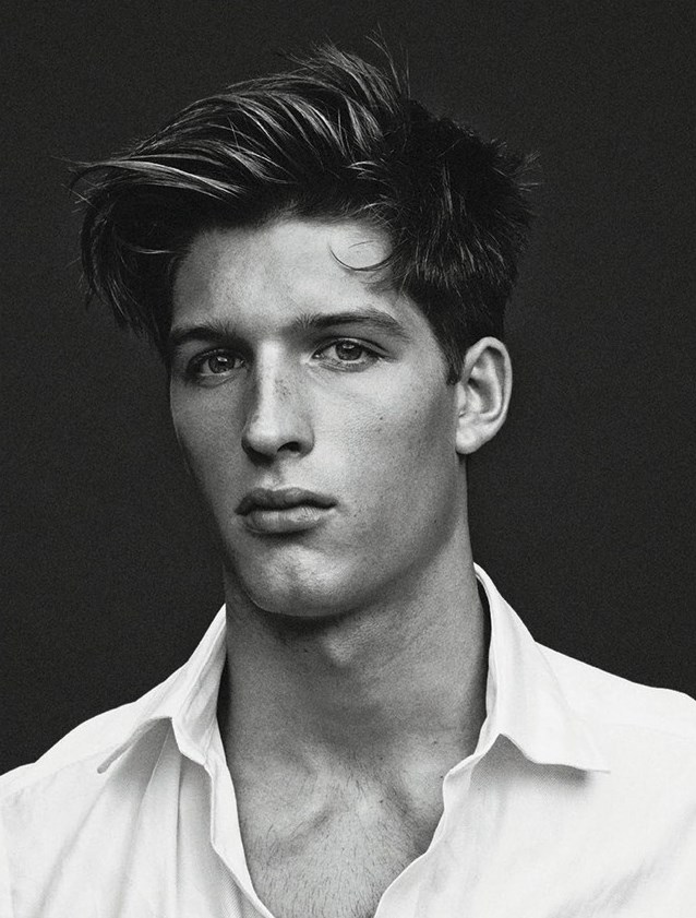 Men in the Mirror–Captured by photographer Randall Mesdon for the latest issue of Man of the World, models Kacey Carrig, James Neate, Zak Steiner, James Lasky and Ben Waddell star in a black & white beauty spread. Styled by Bill Mullen in the simplicity of crisp cotton shirts, the models provide their charming angles for a series of natural portraits, that highlight the essence of male beauty. With slicked hair back, disheveled hairstyles or more soft and romantic haircuts, the boys definitely embody the different sides of contemporary beauty. / Hair by Thom Priano. Makeup by John McKay.
