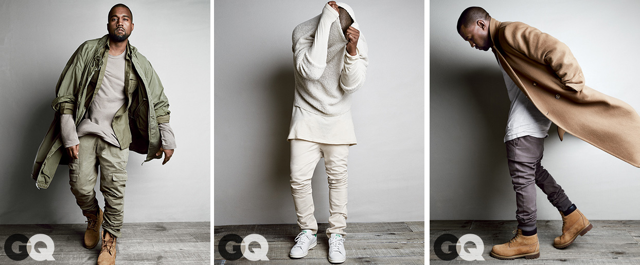 Kanye West on Style-For the August 2014 cover story of American GQ, rap artist Kanye West styles himself for a photo shoot with Patrick Demarchelier. Talking about layering, West shares, “If you’re wearing layers, you can be in L.A., New York, Paris, in an airport lounge, or on a plane, taking layers on and off however. And the proportions get emotional. You know how a graphic can express a feeling or an emotion? Layers can, too.”