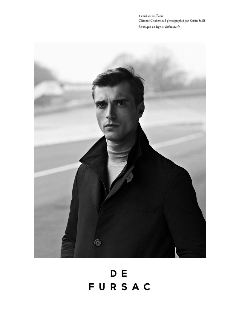 Today’s Style–Leading model Clément Chabernaud and French label De Fursac continue their successful relationship with the brand’s fall/winter 2013 campaign, shot once more by photographer Karim Sadli. Following the collection’s main inspiration for the winter season, which combines timeless elegance with the comfortable functionality of sportswear, Sadli captures the Success model in speedway, delivering black & white images with a vintage vibe. / Art direction by L’Atelier Franck Durand.